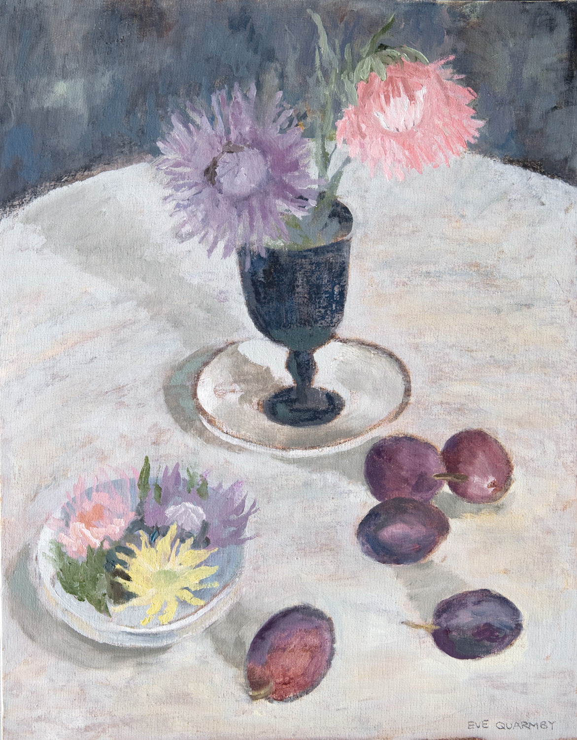 After moving to Bristol in the late 1950s Eve continued her career as an artist and teacher holding solo and joint exhibitions around Bristol. Typical of Eve Quarmby’s painting is the subtly modulated still-life where, carefully selected, commonplace objects, whilst depicted as subjects for quietly dynamic formal arrangements, nevertheless acquire significance that seems to belie their ordinariness. Eve Quarmby died in 2015.