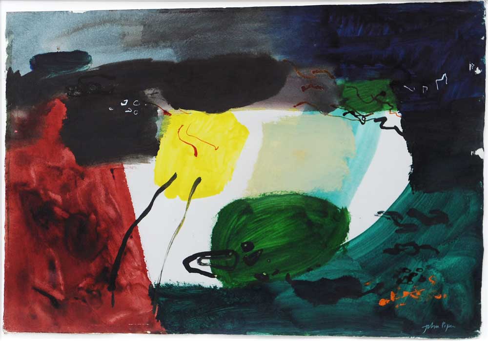 John Piper was born at Epsom in Surrey, 1903. Following his father’s wishes, he spent 5 years in the family law firm before pursuing art, firstly at Richmond School of Art and then at the Royal College of Art. In the 1930s Piper exhibited abstract pictures and constructions, then reverted to creating landscape and architectural images, developing the picturesque style that features in his later work.