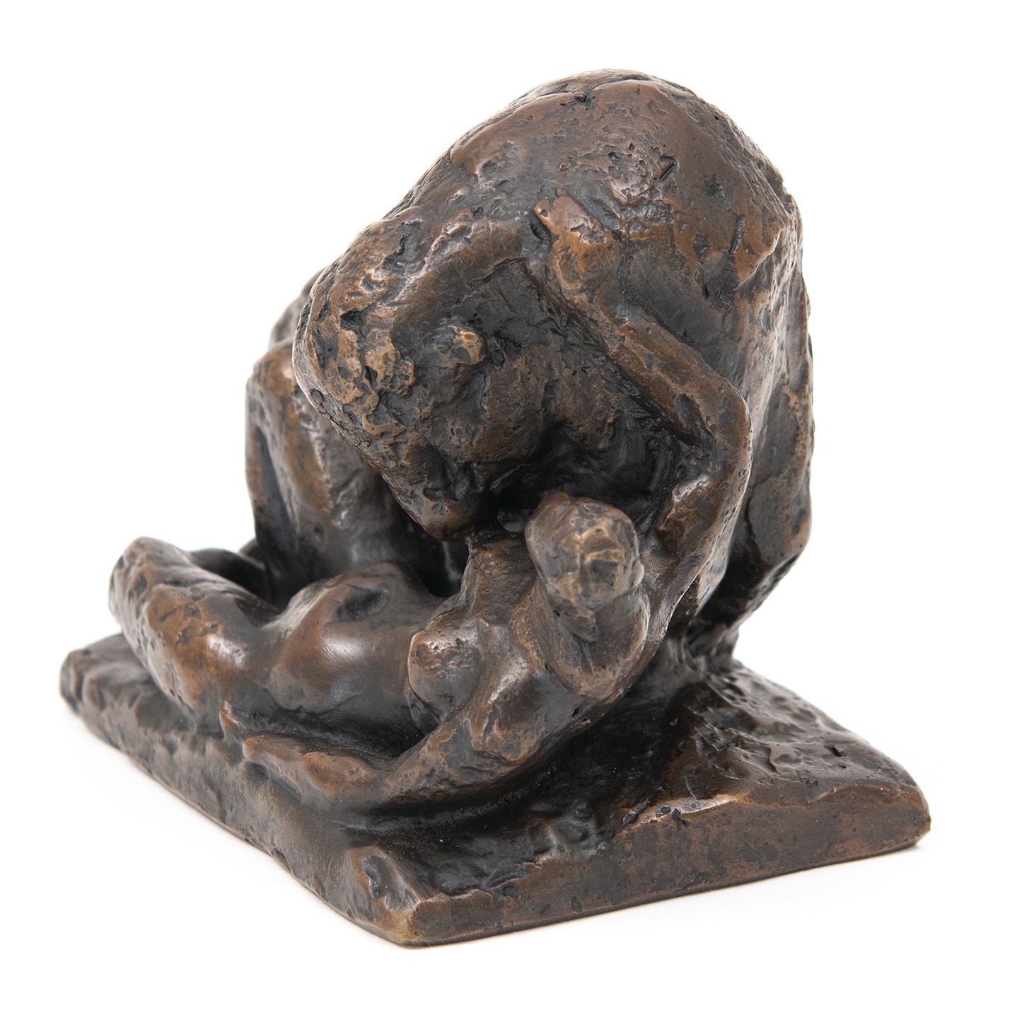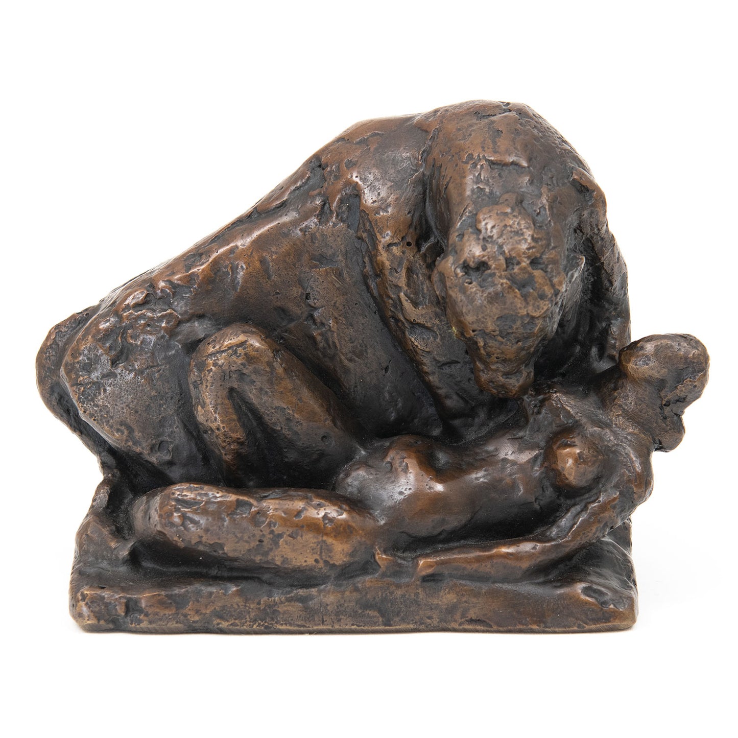 'Europa and the Bull (1946) — the other erotic sculpture among this group of works — takes as its subject the encounter of Zeus in the form of a bull, with the daughter of a legendary king of Tyre. The warm brown patina of this piece enhances the intimacy of the embrace, as the bull nuzzles Europa’s left breast. But it’s pretty mild stuff, and offers scant justification for holding it on a charge of impropriety as the American Customs did when it was sent over to the USA for exhibition.'