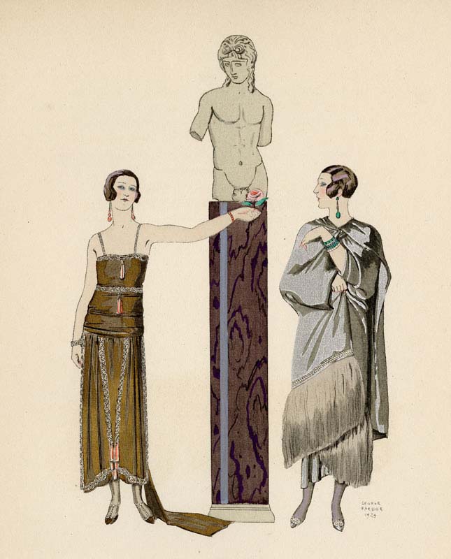 Barbier’s illustrations and pochoir prints from the 1920s are widely considered to epitomise the spirit of Art Deco and Jazz Age Paris with their combination of diverse influences such a Orientalism, Aubrey Beardsley, classical Greek vase decorations and 18th century French paintings. He died in 1932 at the zenith of his artistic career, with regular contributions to L’Illustration magazine.