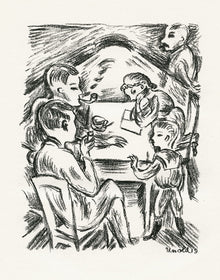 German Expressionism was borne on a wave of resistance and reaction. At its core it was concerned with emotion and the individual experience. This scene is typical in subject matter featuring an ordinary family in an urban landscape.