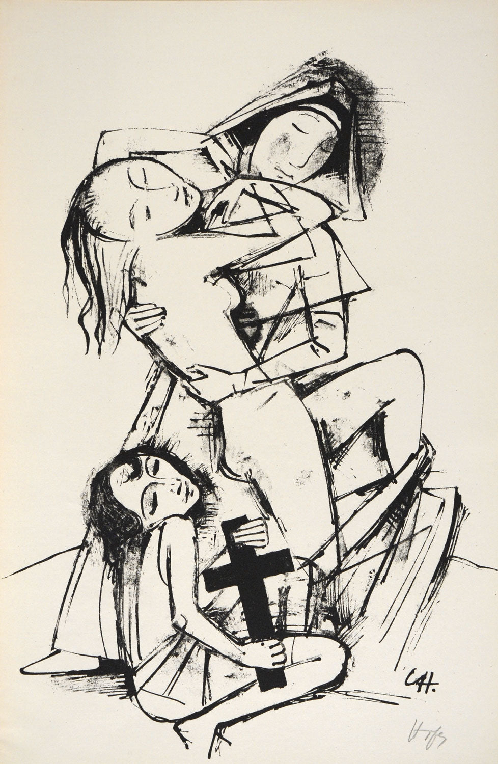 Carl Hofer (1878 – 1955) was one of the most prominent German Expressionists. Hofer's works in the 1920s concentrate on unpretentious figure groups: couples, girls with their arms around one another, young men playing cards. These works use ‘an indeterminate space . . . to portray people in relaxed contact with one another, suggesting human solidarity.’ Angela Schneider
