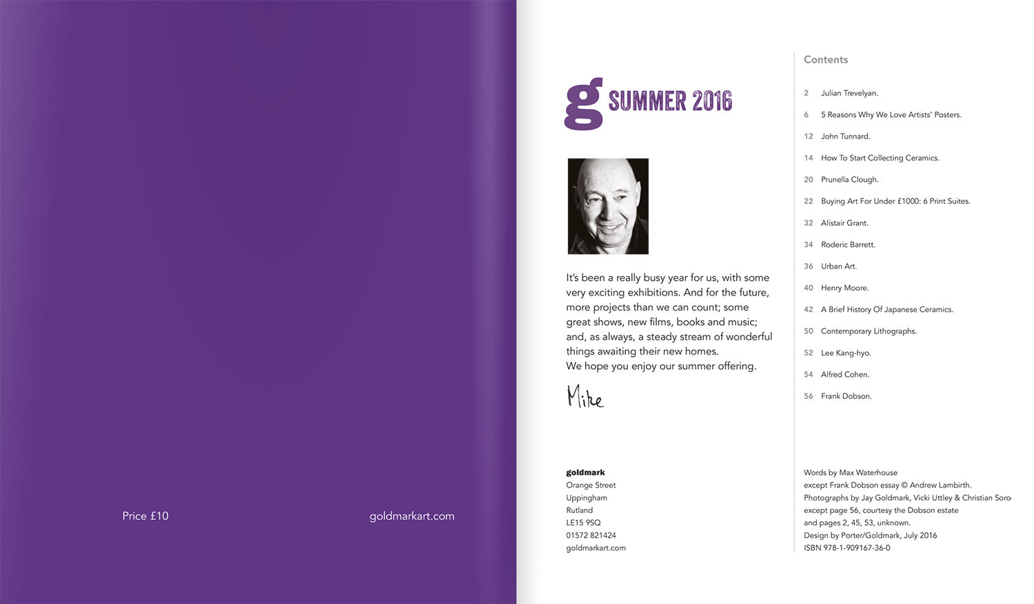 Goldmark is proud to have changed the lives of many living artists, enabling them to spend more of their time making pictures, pots and sculpture.READ MORE