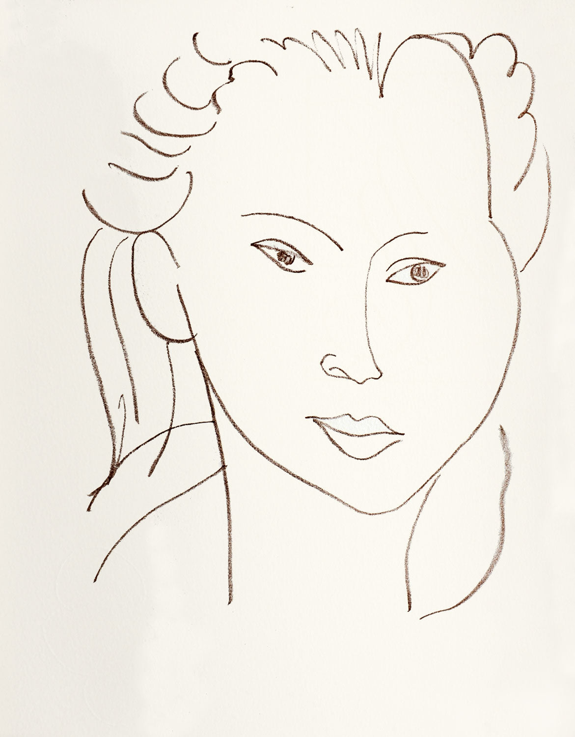 In 1945, following the success of his series of lithographs under the titles Visages, inspired by Reverdy's poetry, Matisse began working with several exotic models, mostly Polynesian, to prepare illustrations for an ambitious suite of lithographs that he hoped to do in homage to his friend, the poet John-Antoine Nau.
