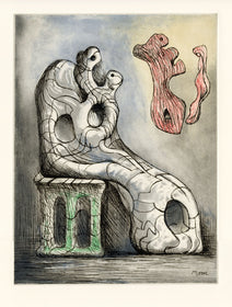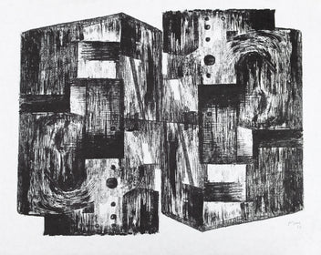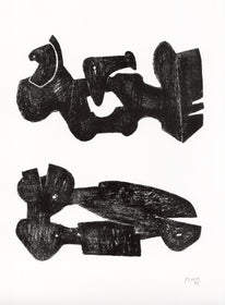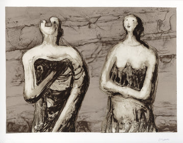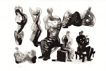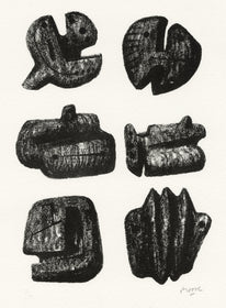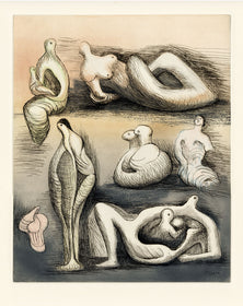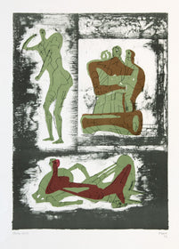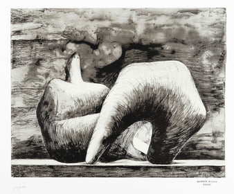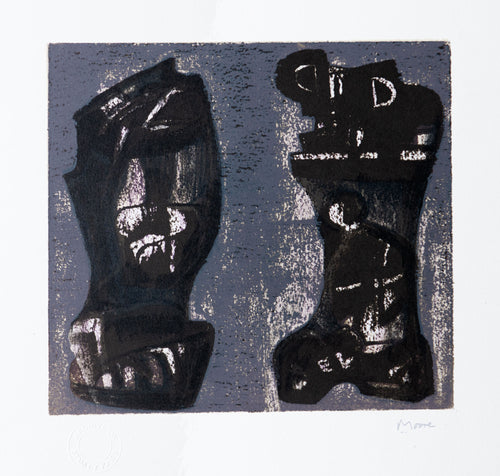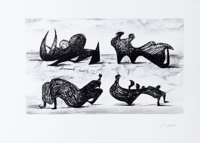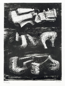His wider reputation was assured in 1948 when he won the International Sculpture Prize at the Venice Biennale and from then on came public commissions from all over the world. Moore started printmaking in 1931, and in 1958 met the master lithographer Stanley Jones at the Curwen Press with whom he continued to make prints until the end of his life in 1986.