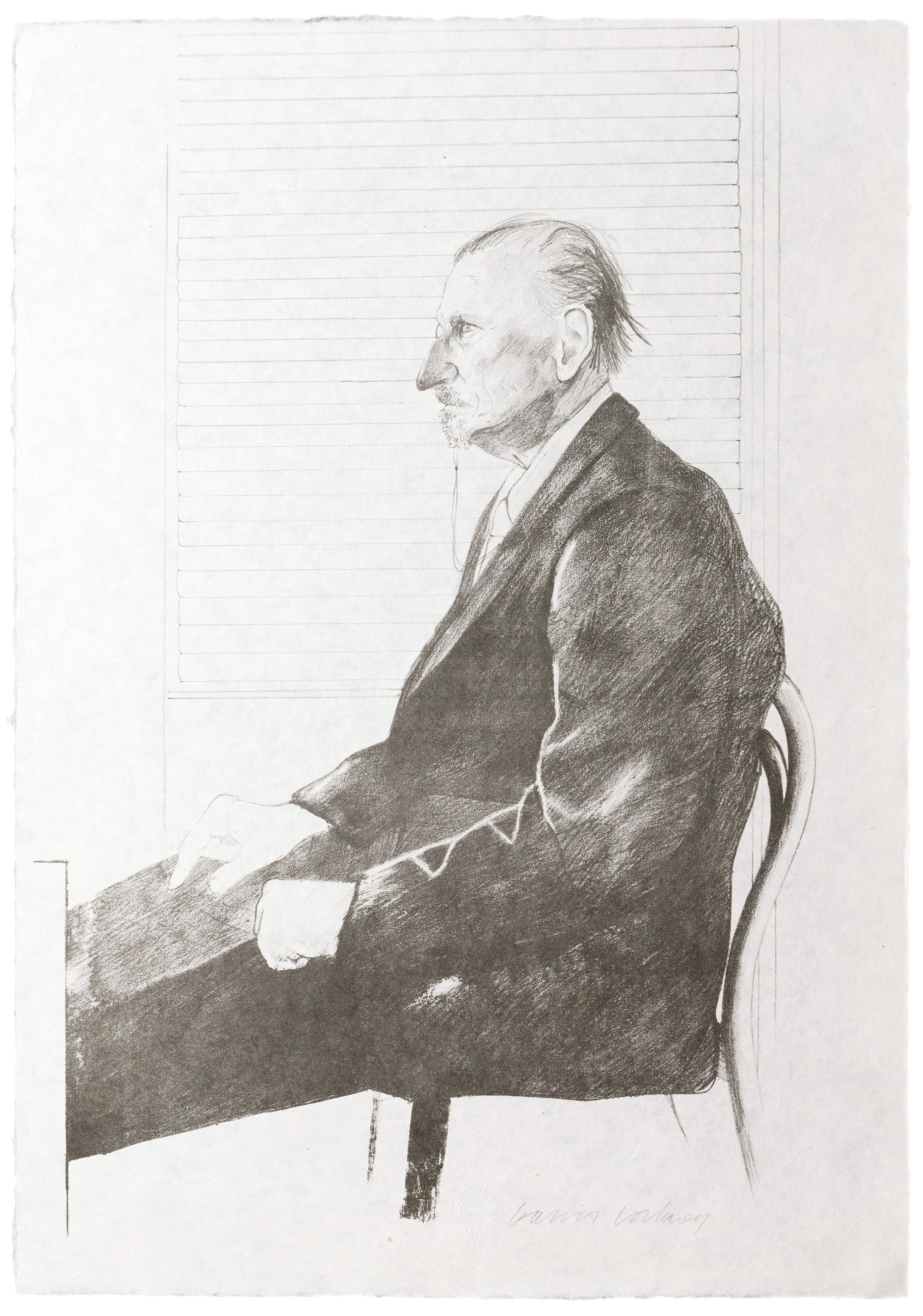 Hockney worked on a zinc plate in crayon for this lithograph.
