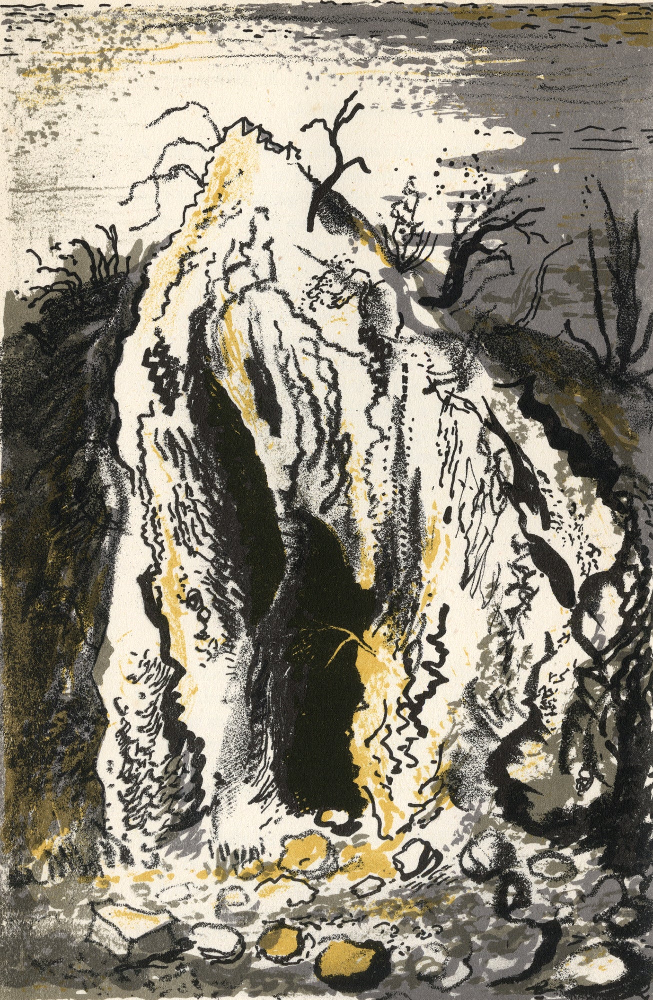 Piper experimented with printmaking from as early as 1923 when he produced four wood engravings. Piper’s prints embody his love of Britain through their depiction of its art, architecture and topography. However frequently underpinning their design, as the artist Rigby Graham has indicated, are the elements of collage, construction and assemblage that featured in his modernist work of the early 1930s.