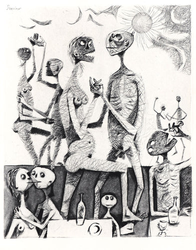 Mario Prassinos was born in Istanbul in 1916. He was exiled to France with his Greek parents in 1922, aged 6, and became a naturalized French citizen in 1949. He became acquainted with Surrealists; Breton, Dalí, Man Ray, Duchamp and Ernst and decided to become an artist. From 1932 to 1936 he worked in a Surrealist style, introducing automatism and formal ambiguities that he retained in his later work.