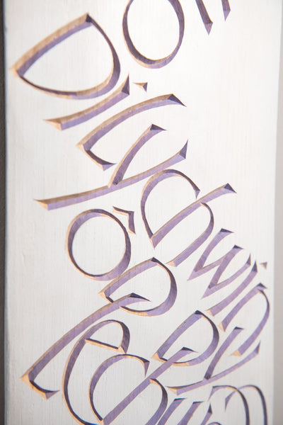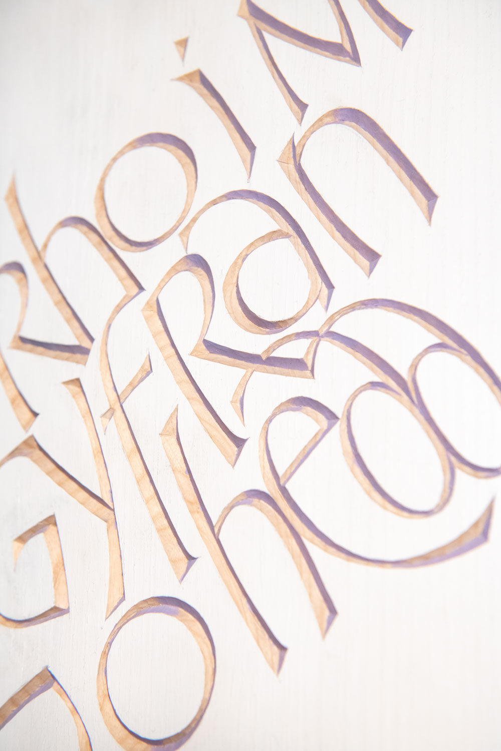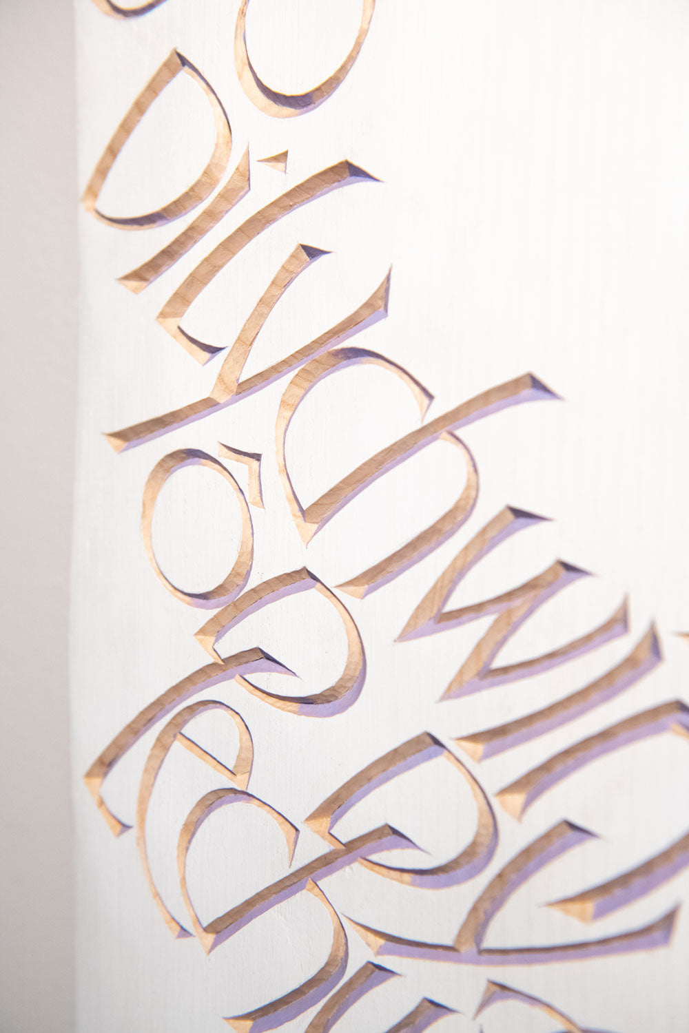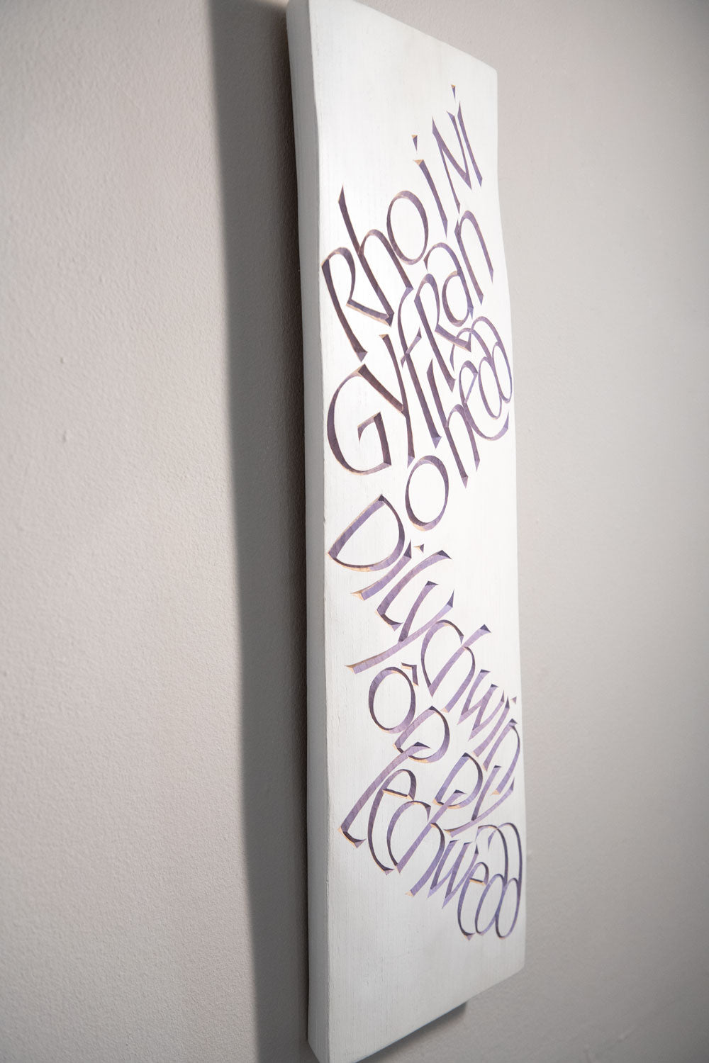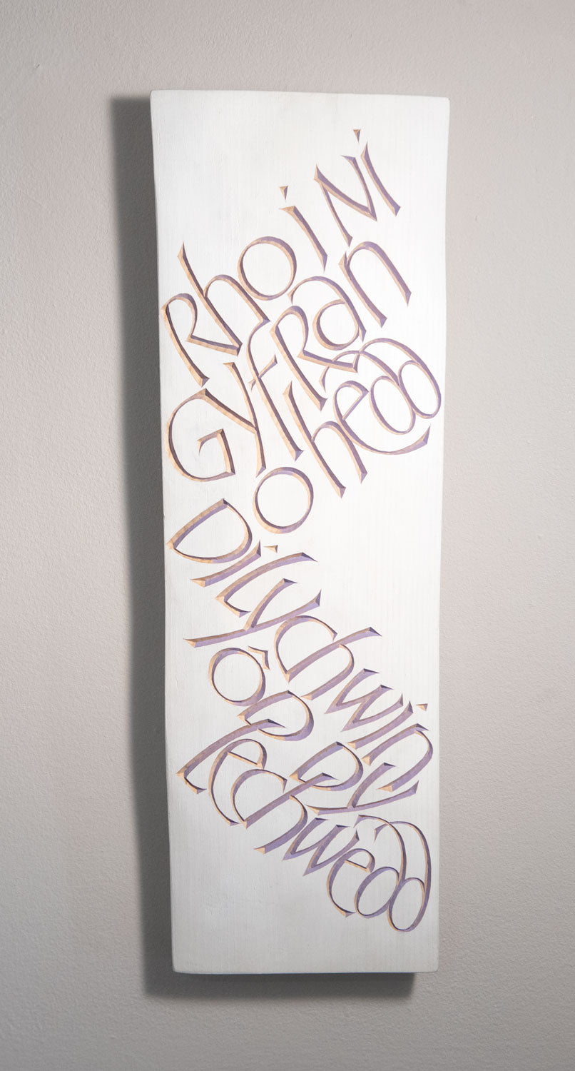 After a year Wenham left research and for the next 23 years taught in secondary, primary and special schools, with 9 years’ lecturing at the University of Leicester. He first exhibited his letter-cutting work in 1982; since 1984 it has been shown in the major British exhibitions of lettering arts. Wenham’s work is held in the Crafts Council’s Permanent Collection and in private collections in Britain, the USA, Germany, Japan and Puerto Rico.