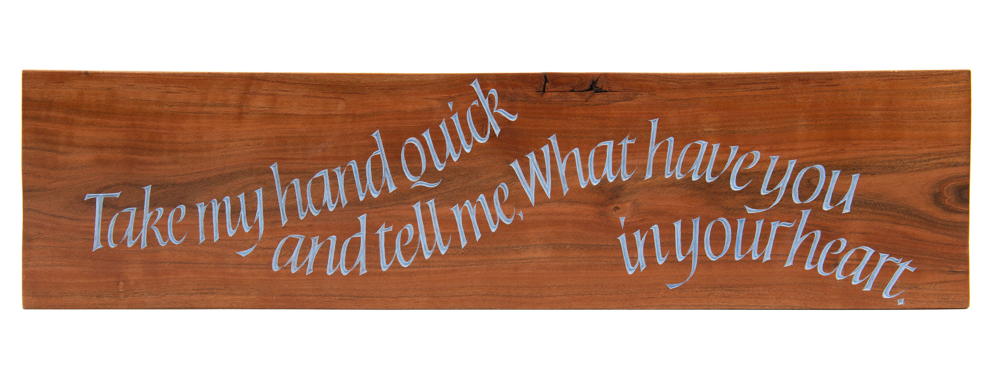 After a year Wenham left research and for the next 23 years taught in secondary, primary and special schools, with 9 years’ lecturing at the University of Leicester. He first exhibited his letter-cutting work in 1982; since 1984 it has been shown in the major British exhibitions of lettering arts. Wenham’s work is held in the Crafts Council’s Permanent Collection and in private collections in Britain, the USA, Germany, Japan and Puerto Rico.