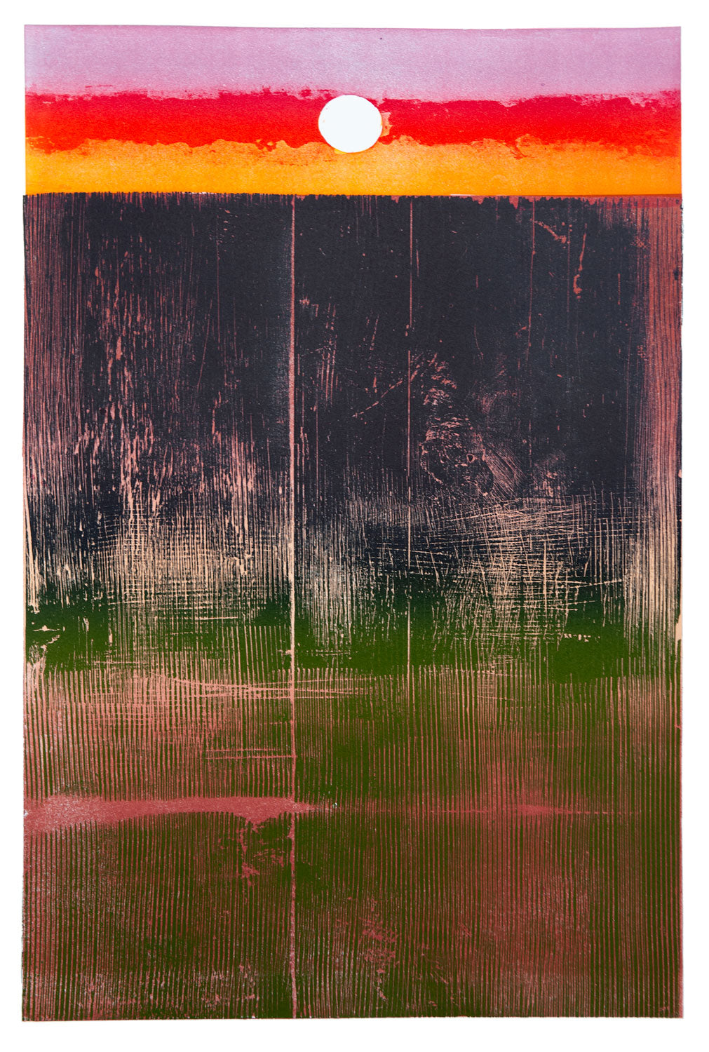 Suns and Moons Suite, 1972 is a collection of eight woodcuts with linocut accompanied by poems, printed by Shelley Rose at Argus Studio.