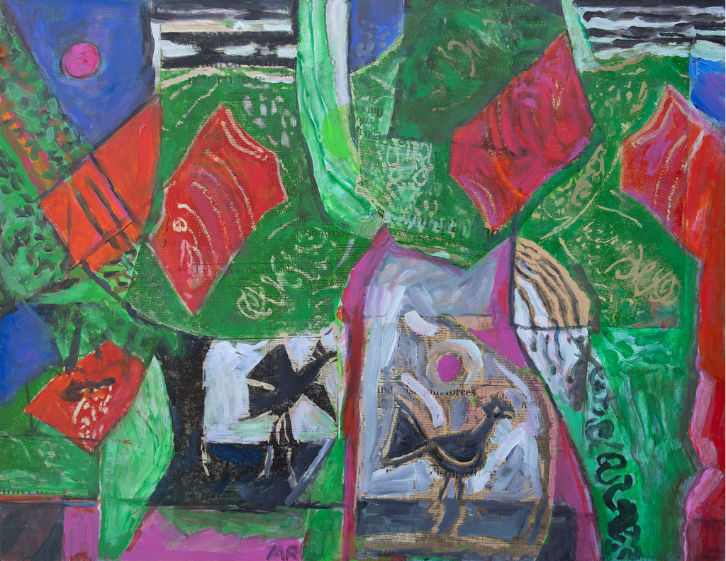 Including acrylic, gouache, pastel, linocut and newspaper.