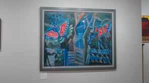 Butterflies and many of the shapes that appear in this piece can be seen throughout Rothenstein's career. This style of painting and the dark backgrounds were mainly made in the 1990s, relating closely to woodcuts that he was doing at the time.