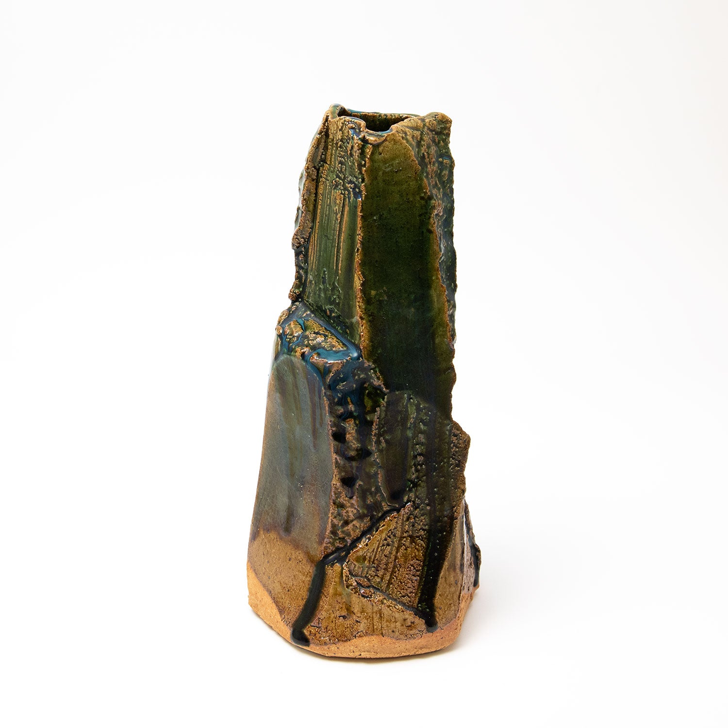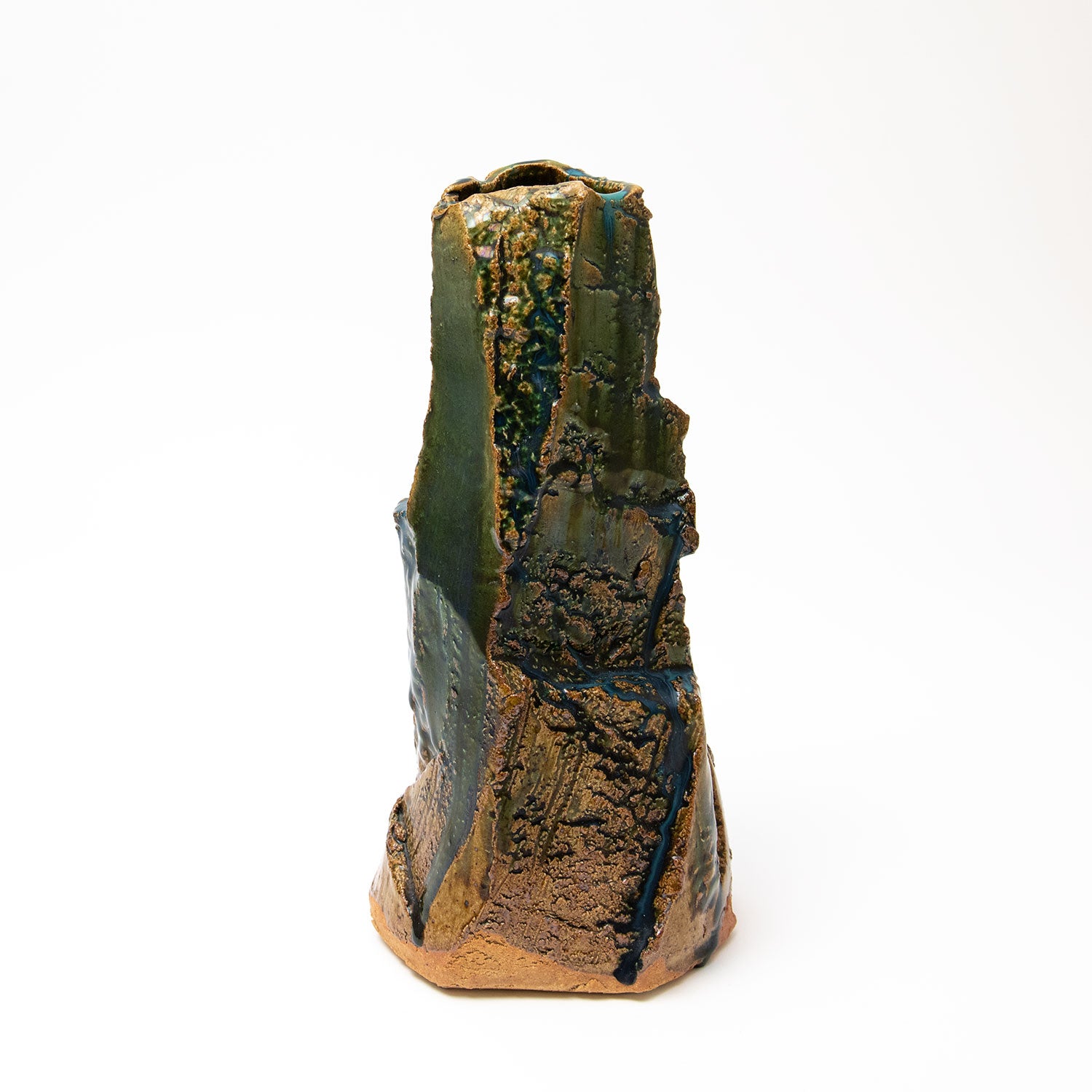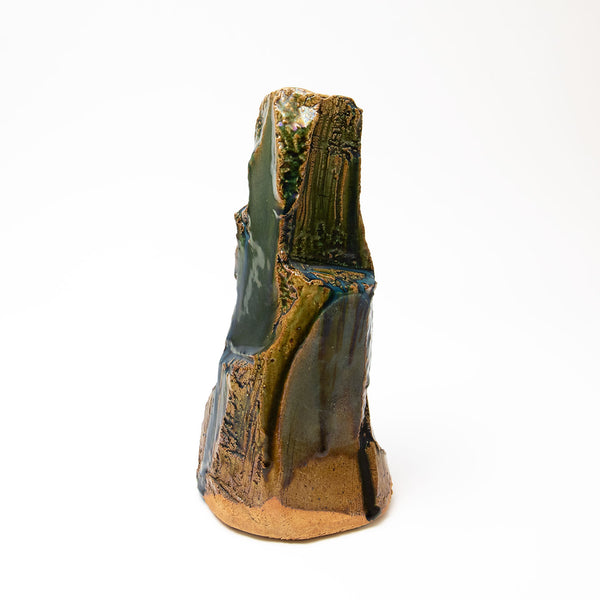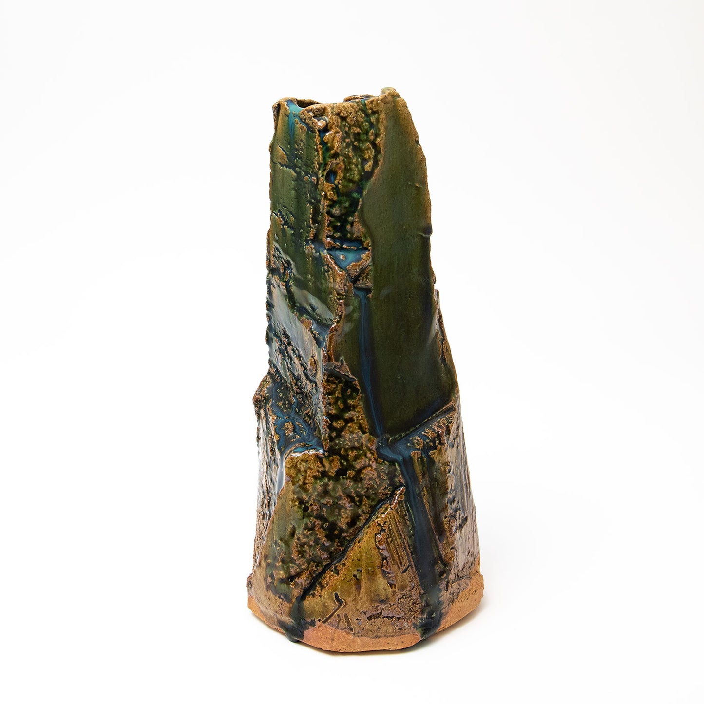 Her sake ‘monsters’ combine Jurassic dinosaur bodies with dainty beaks and curled up feet, while her jungle-green Oribe, cresting and pooling into opaque aquamarine blue, is a thing of prehistoric beauty.