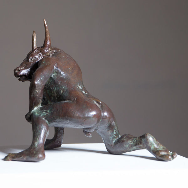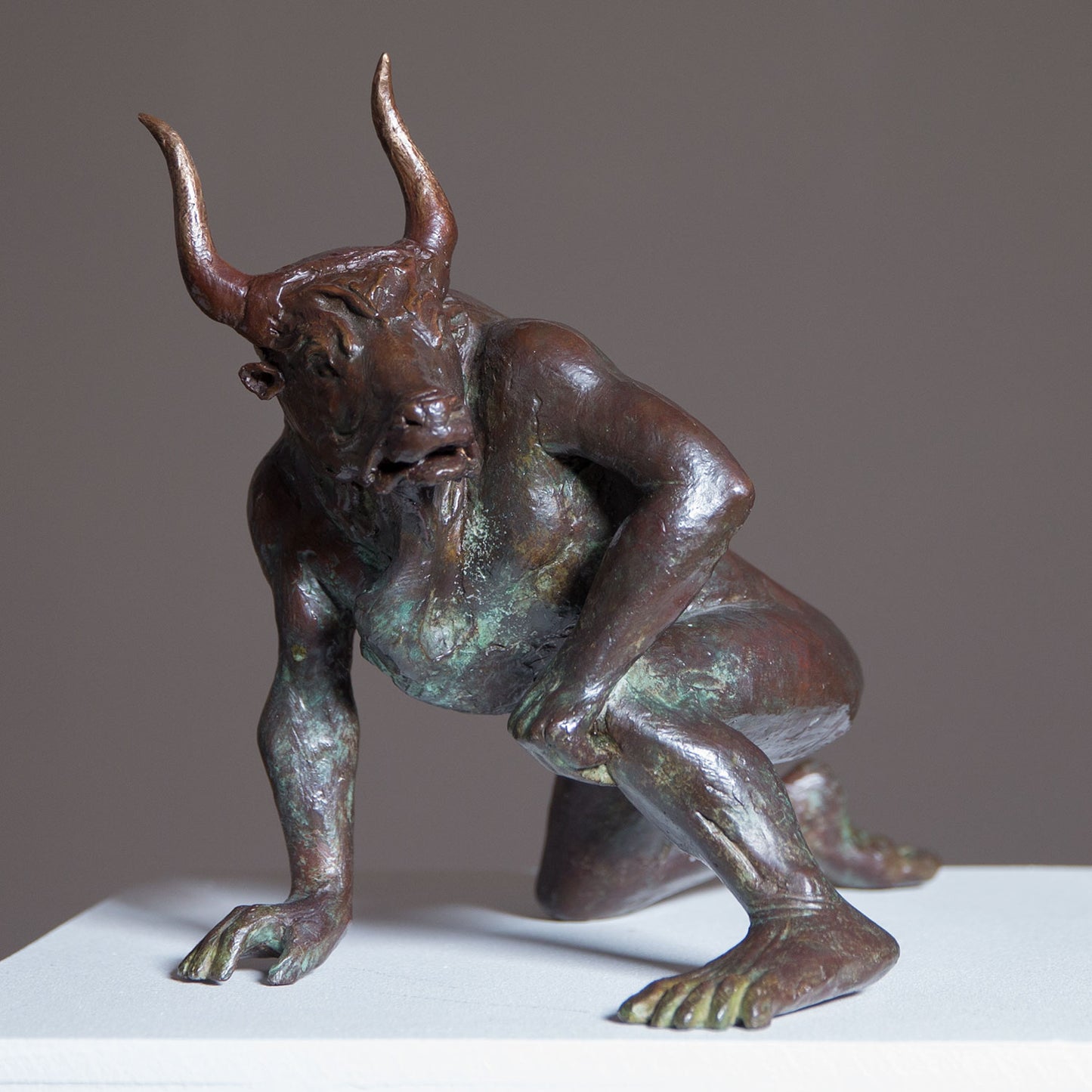 One of Olive Wootton's best known themes,the Minotaur, a subject that she engages passionately with. "She finds appealing 'the battle between his human and animal make up'" Chris Wrigley, Goldmark catalogue 2015.
