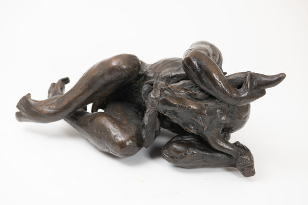 'Olive's minotaurs are every inch virile and menacing figures. She has made five versions of the minotaur and may well do more, for it is a subject with which she really engages. She finds appealing 'the battle between his human and animal make up'.' Chris Wrigley, Olive Wootton- Myth and Legend, 2015.