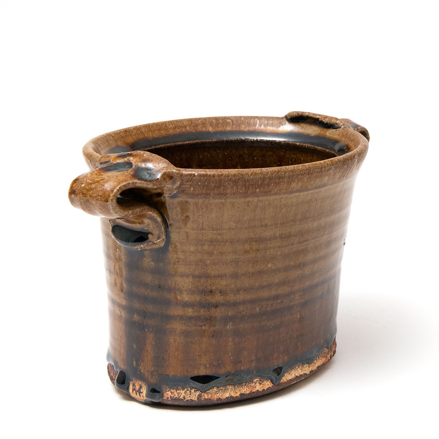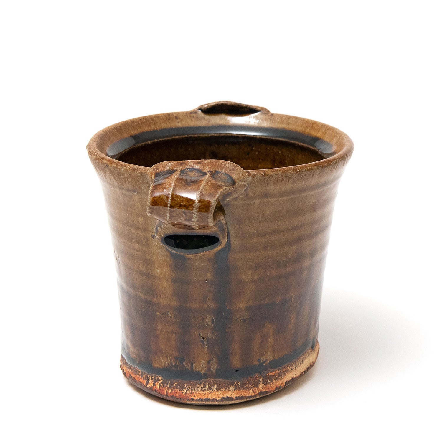 Dark clay. Local kaolin slip, ash glaze. Fired in the 1st chamber