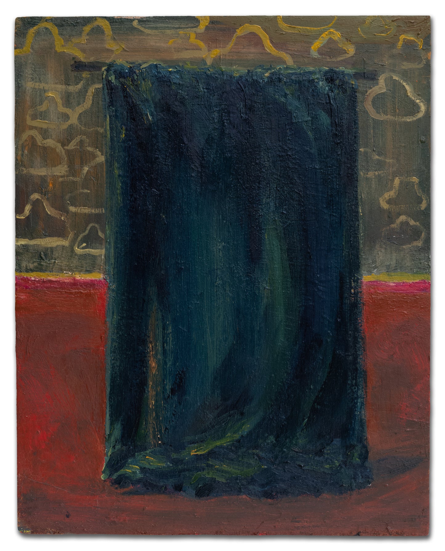 "Bancroft can work through multiple layers of paint on a canvas, erasing, scumbling colours to soften outlines, overpainting and underpainting, most recently experimenting with neon acrylic and oil to heighten and brighten certain hues. All this to access 'the fire that comes from the painting'." Hilary Davies, August 2021.