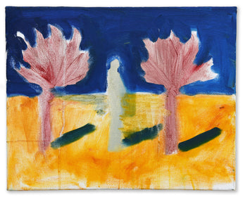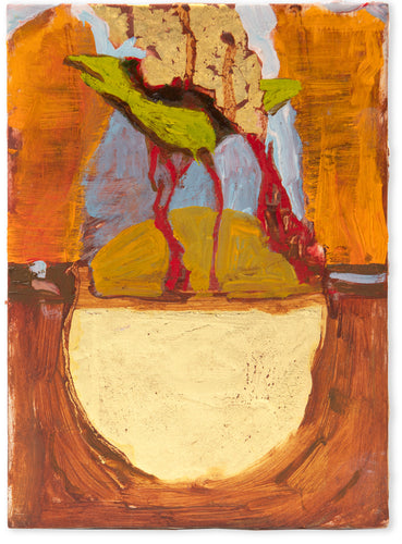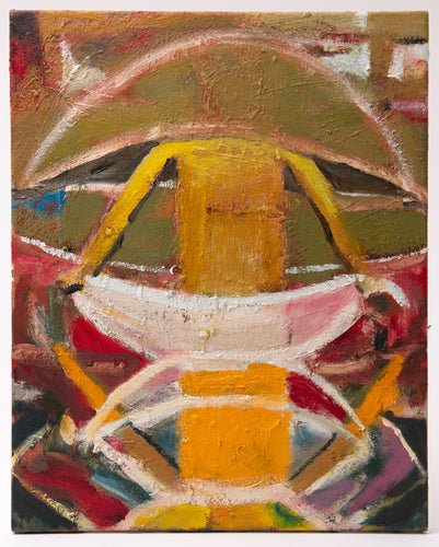 "Bancroft can work through multiple layers of paint on a canvas, erasing, scumbling colours to soften outlines, overpainting and underpainting, most recently experimenting with neon acrylic and oil to heighten and brighten certain hues. All this to access 'the fire that comes from the painting'." Hilary Davies, August 2021