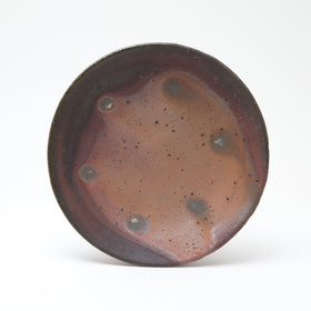 Natural ash glaze occurs in a wood fired kiln when ash particles carried around the kiln by the hot air and flames land and melt on the pots, often creating dramatic colour variations on their surfaces depending on their position in the kiln.