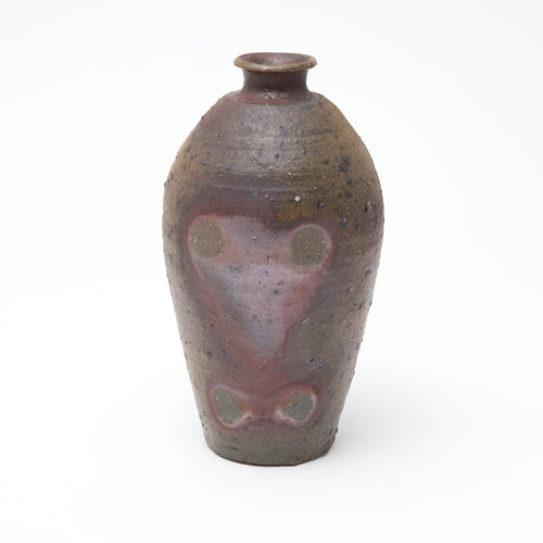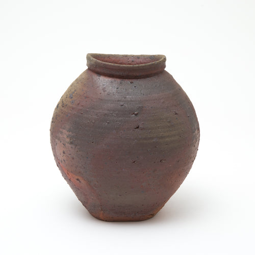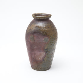 His square-lipped pouring bowls are refined with a touch that belies the coarseness of his clay, while blushing wood-fired porcelain bottles shimmer with pink and purple pearlescence.