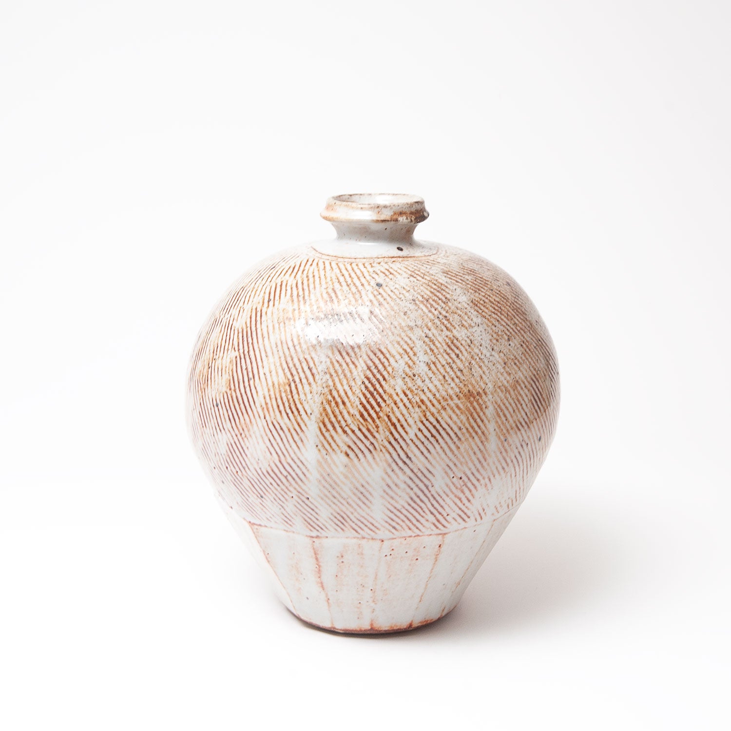 Phil Rogers was born in Newport, Gwent in 1951. He attended Newport and Swansea Colleges of Art and had originally intended to become a painter. While still at college in the early 1970s Rogers and a friend taught themselves to throw. Their only guidance came from Bernard Leach’s A Potter’s Book and their throwing practice came in the form of competitions to see who could produce the biggest pot.