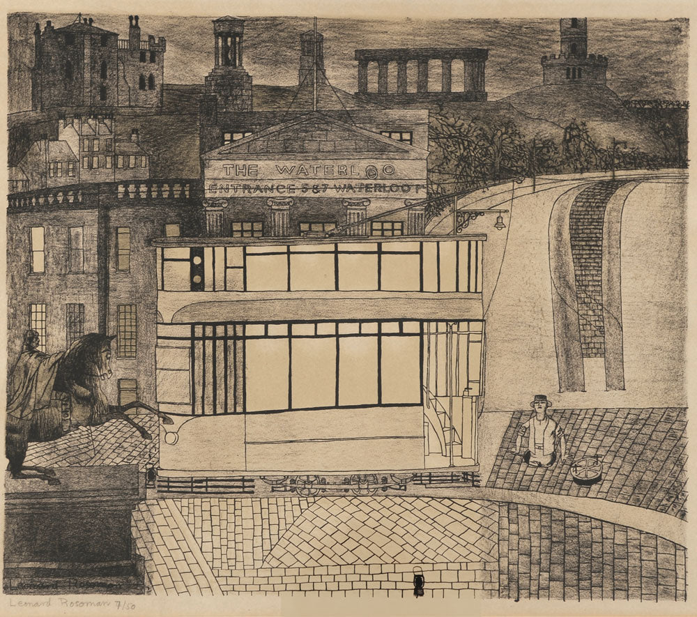 With the advent of the war, Rosoman joined the Auxiliary Fire Service, producing paintings based on his experiences as a fire-fighter during the Blitz. Further commissions followed from the War Office to document naval activities in the Far East. His returned to Britain with major teaching positions and commissions, including the ceiling of the chapel at Lambeth Palace. He was elected RA in 1969 and OBE in 1981.