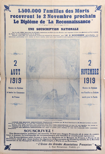 1.500.00 Familles des Morts recvront le 2 Novembre prochain Le Diplôme de, 1919