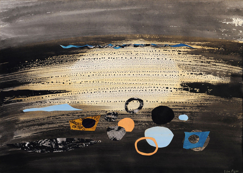 Piper experimented with printmaking from as early as 1923 when he produced four wood engravings. Piper’s prints embody his love of Britain through their depiction of its art, architecture and topography. However frequently underpinning their design, as the artist Rigby Graham has indicated, are the elements of collage, construction and assemblage that featured in his modernist work of the early 1930s.