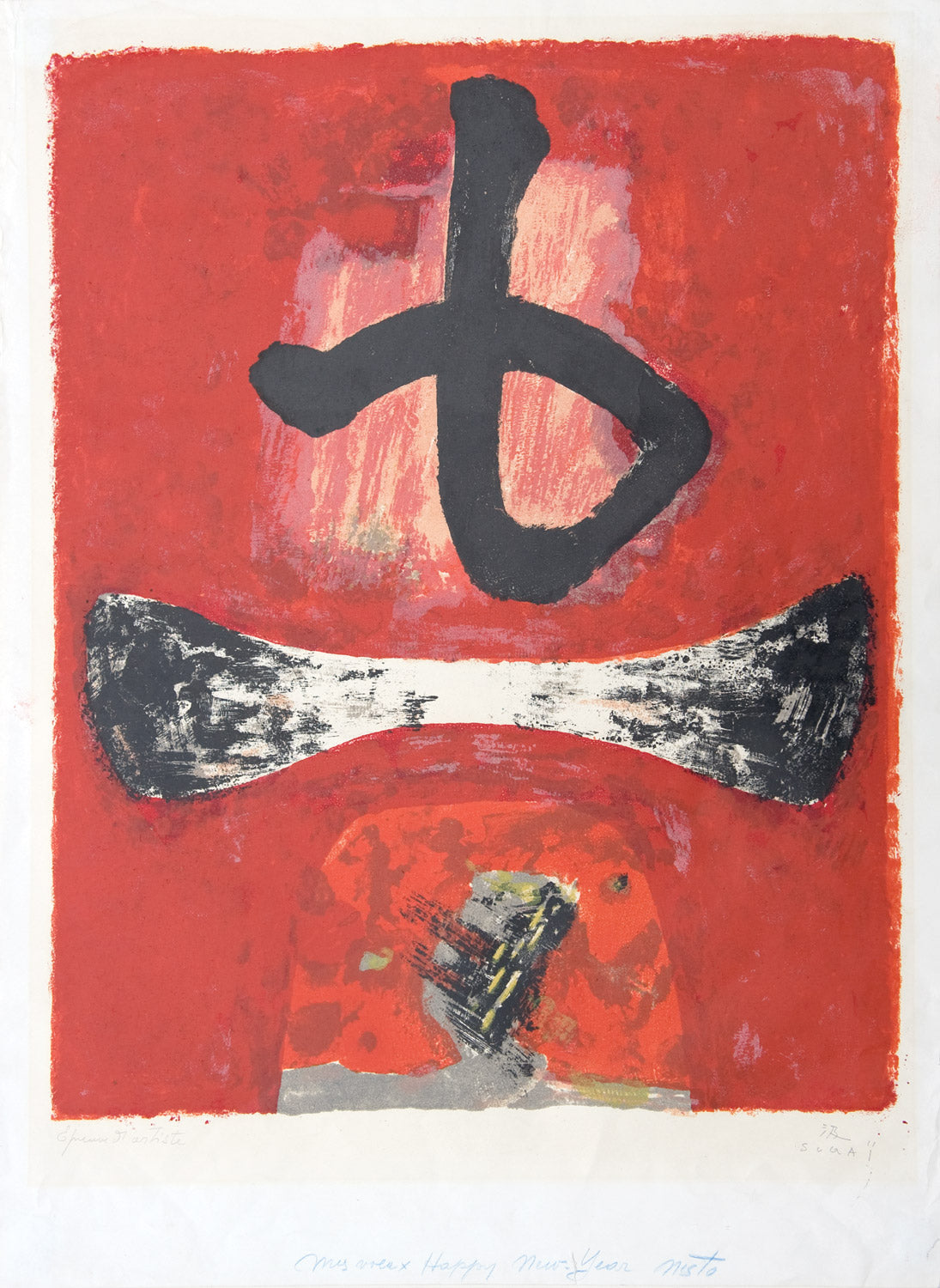 Sugai left for Paris in 1952, where he found Abstract Impressionism was the prevailing mode, the first of many movements he was to encounter and learn from, ranging from Pop and Op to Antiart, Kinetic Art to Minimalism. He began by adapting traditional ukiyoe woodblock techniques to his personal vision of a foreign culture. The forms were contemporary, but the colours had the simplicity and radiant purity of classic masters of the art that enraptured Van Gogh and the Post Impressionists. He also experimented with silk-screen printing and lithography.