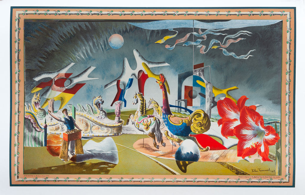 Wood’s work features magical, symbolic figures and signs, what the artist calls an exploration of the interior world of the imagination. He spends a great deal of time priming his canvases, often four times over, and builds his pictures in such a way that once begun each must be finished in a single sitting, an emotionally draining task to say the least.