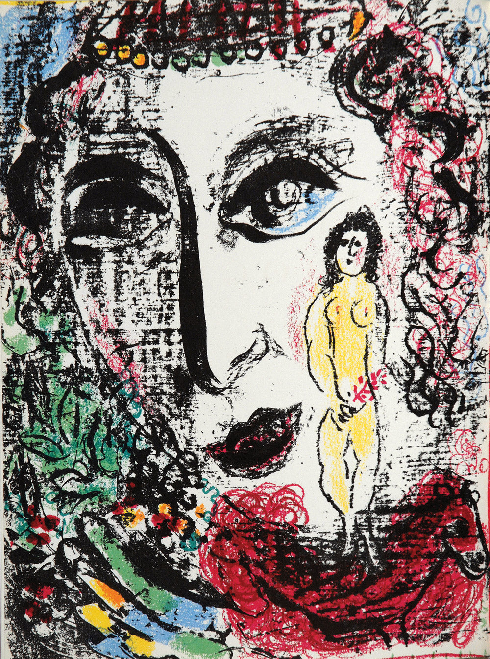 Returning to Paris in 1923 he met the art-dealer Vollard for whom he illustrated Gogol’s Dead Souls and the Fables of La Fontaine. Between 1941-47 he moved between occupied France and the USA, eventually settling near Nice. Chagall was a prolific artist, his work reminiscent of Jewish life, bible stories and of the folklore from his early years in Russia. He died in 1985.