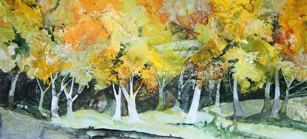 Jenny Grevatte is continually evolving and developing her ideas and methods. Recent themes include trees and woods, hedges, rooftops, huts , bookshelves, rock formations, sunflowers, artichokes, wild flowers and, her constant favourite, still life. Scale, format and composition are exciting challenges for her and recently she has been exploring the quality and mystery of changes of light in the landscape. A new and powerful theme is the moon, seen in all its varying moods and allowing Jenny to introduce a new palette of dark colours.