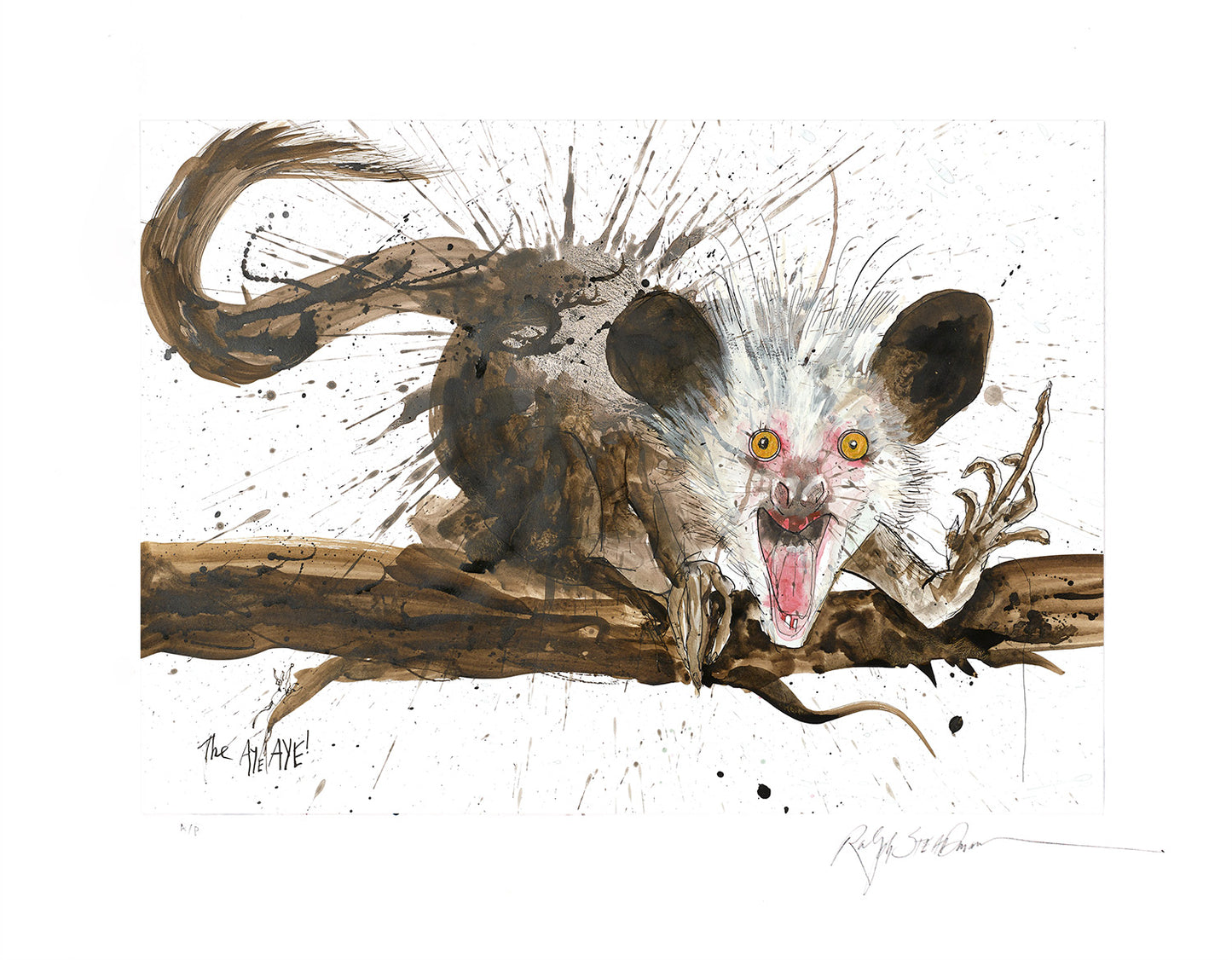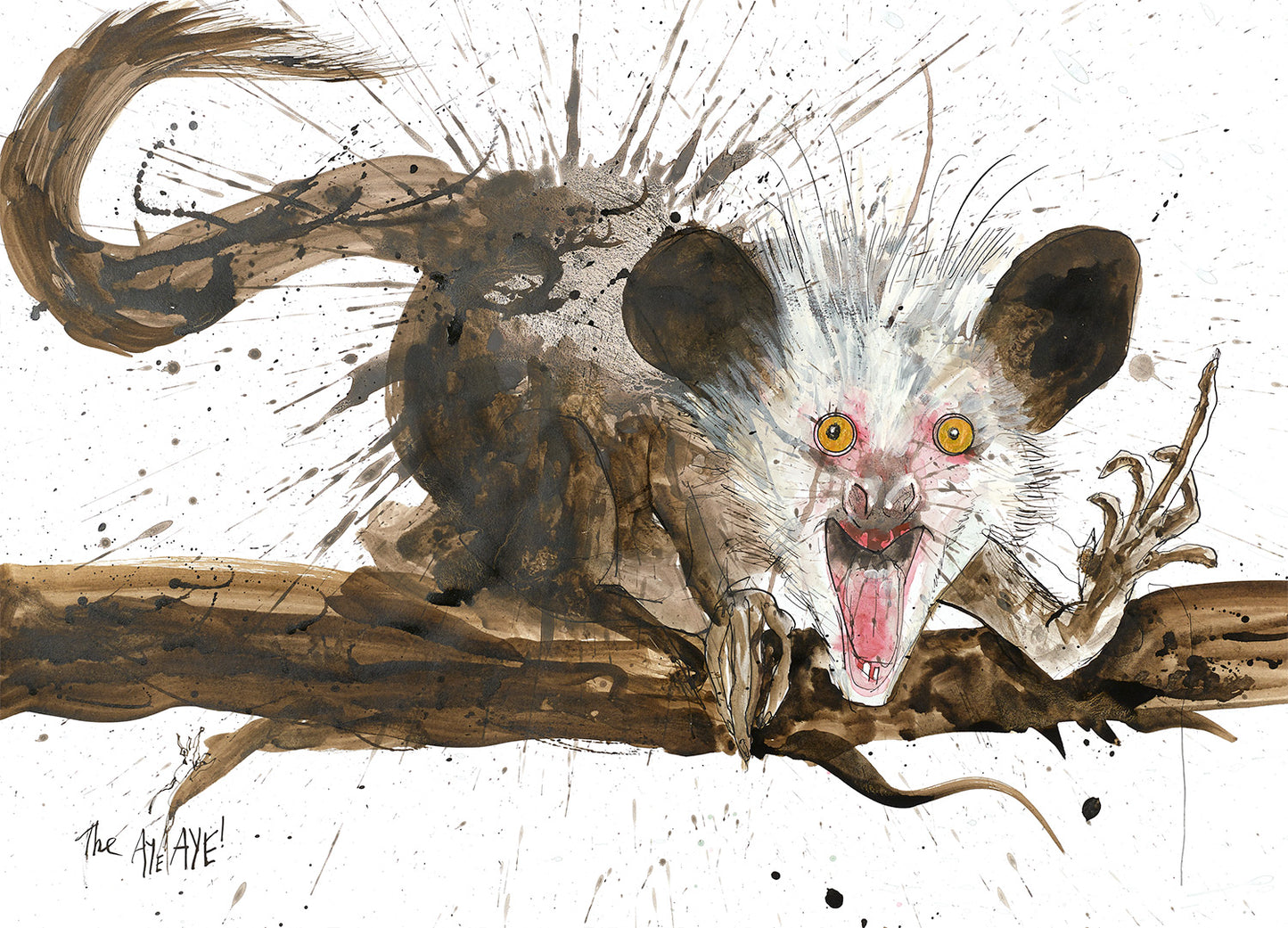 The Aye-aye is a percussive forager, tapping away with his middle finger on wooden surfaces and listening to determine where the cavities lie and figuring out if a grub is inside. Being from the lemur family, its home is the island of Madagascar. Now considered Endangered due to habitat loss and hunting. But there is a silver lining, the Aye-aye is very adaptable, being able to live in rainforests, mangrove swamps and dry scrub areas.