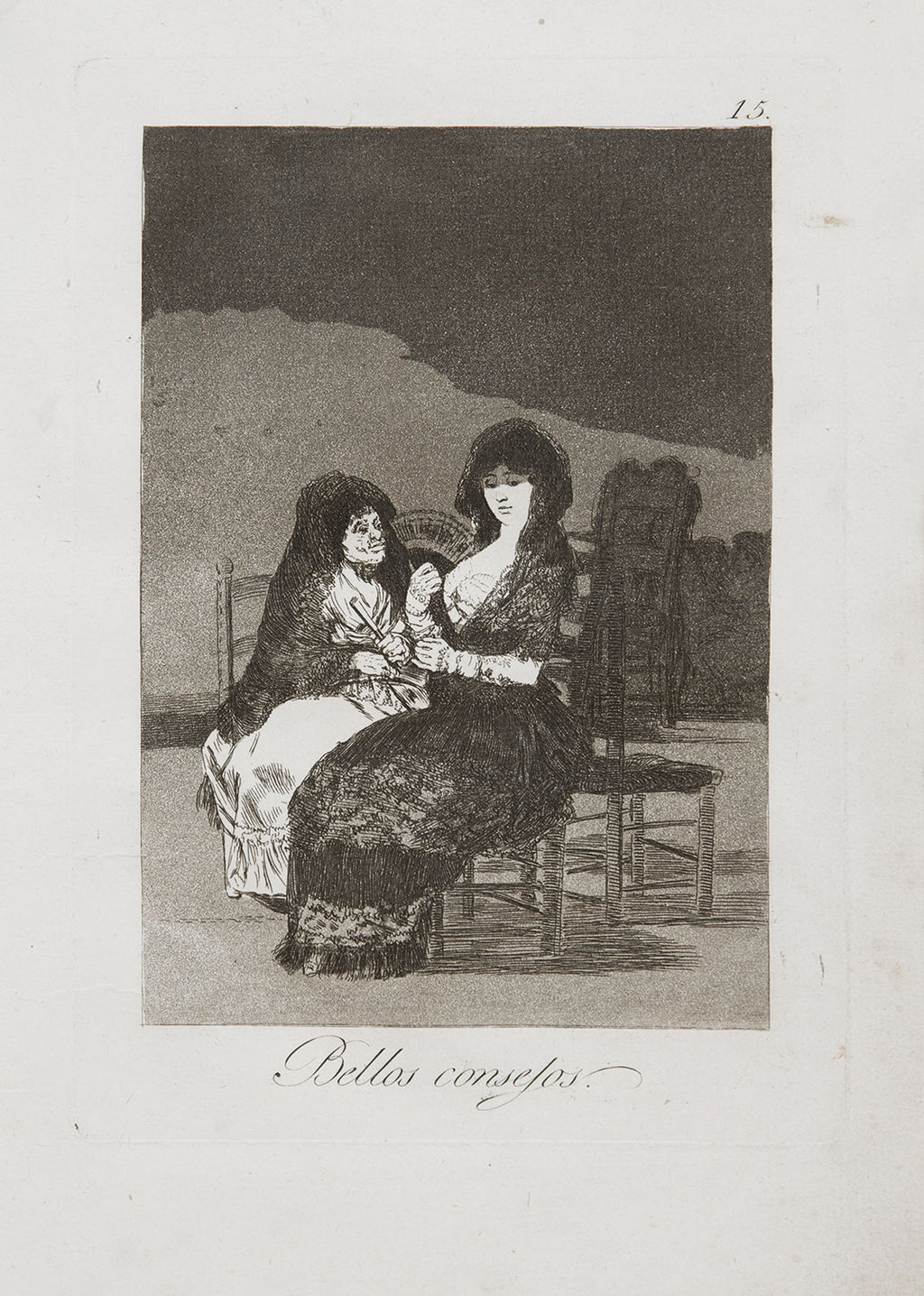 Now almost deaf, Goya’s work showed greater elements of fantasy and satirical observation. Completed in 1799, the Caprichos etchings analysed humanity’s flaws and provided the stylistic basis for his greatest and darkest work, The Disasters of War, composed during the Peninsular War. Goya later returned to Spain, but soon went into voluntary exile in Bordeaux, working until his death there in 1828.