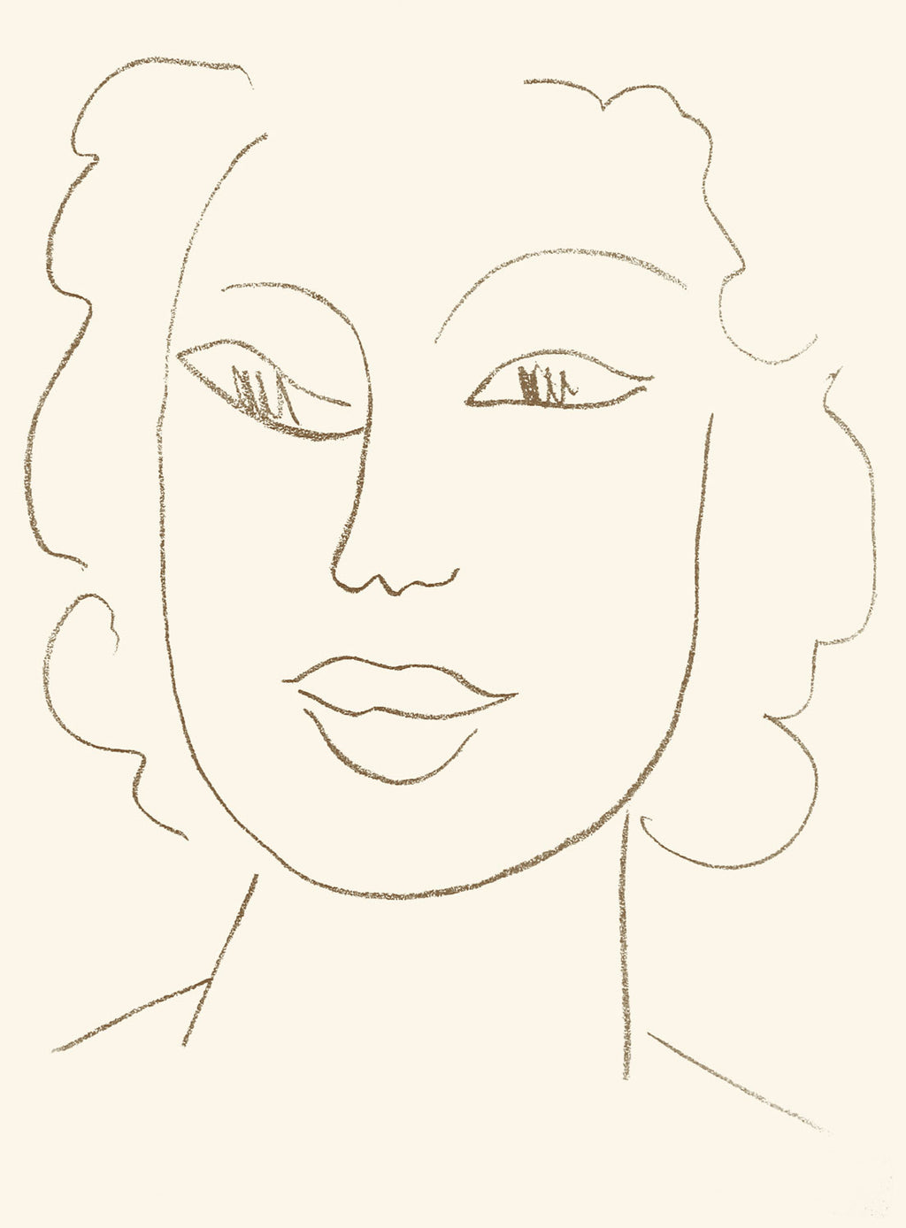 In 1945, following the success of his series of lithographs under the titles Visages, inspired by Reverdy's poetry, Matisse began working with several exotic models, mostly Polynesian, to prepare illustrations for an ambitious suite of lithographs that he hoped to do in homage to his friend, the poet John-Antoine Nau.