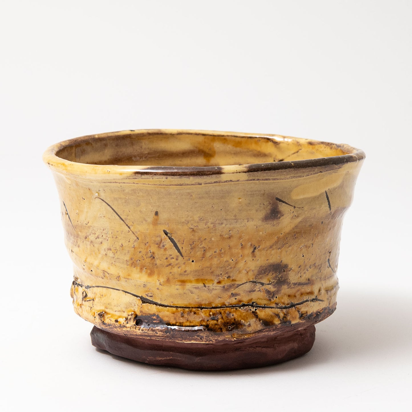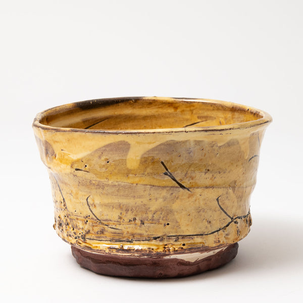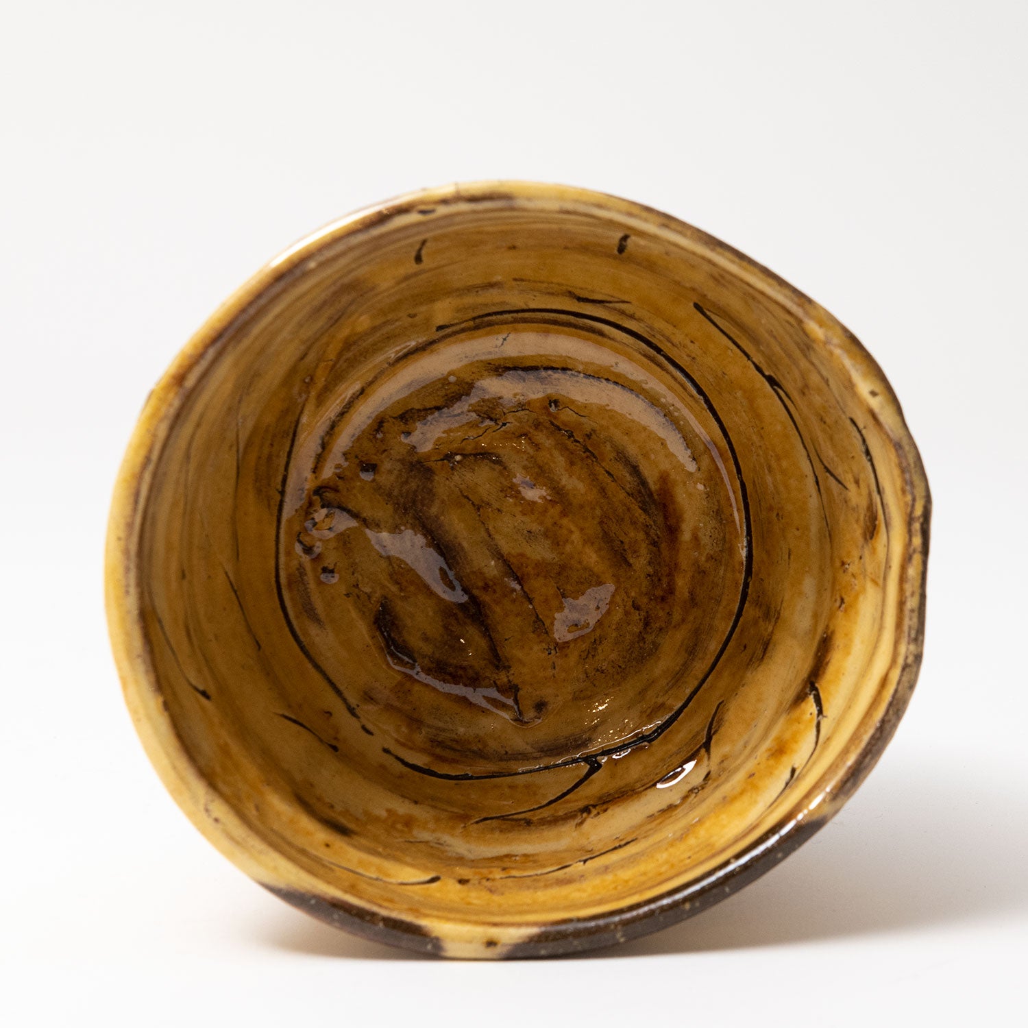 • Yellow & brown with sgraffito • Signed • 10.5cm x 17cm