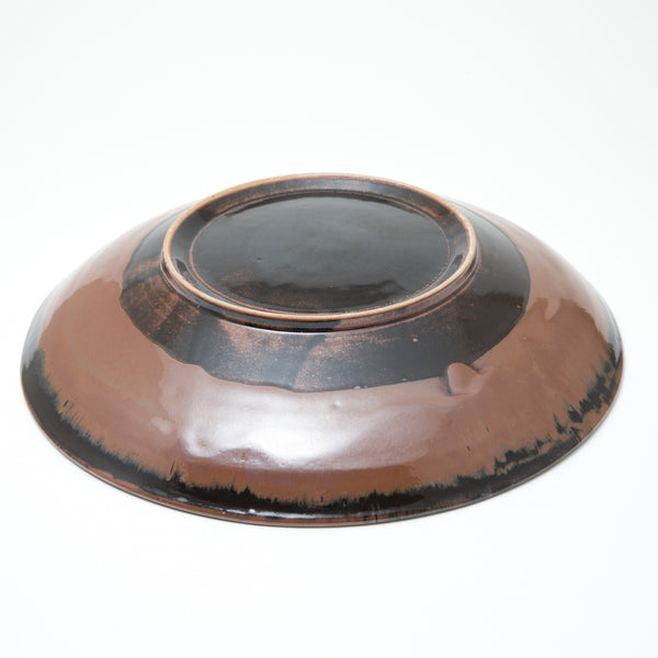 Dots and lines find a natural rhythm on guinomi and small vases, while the lustrous surfaces of persimmon platters are softened by mossy Yōhen ash.