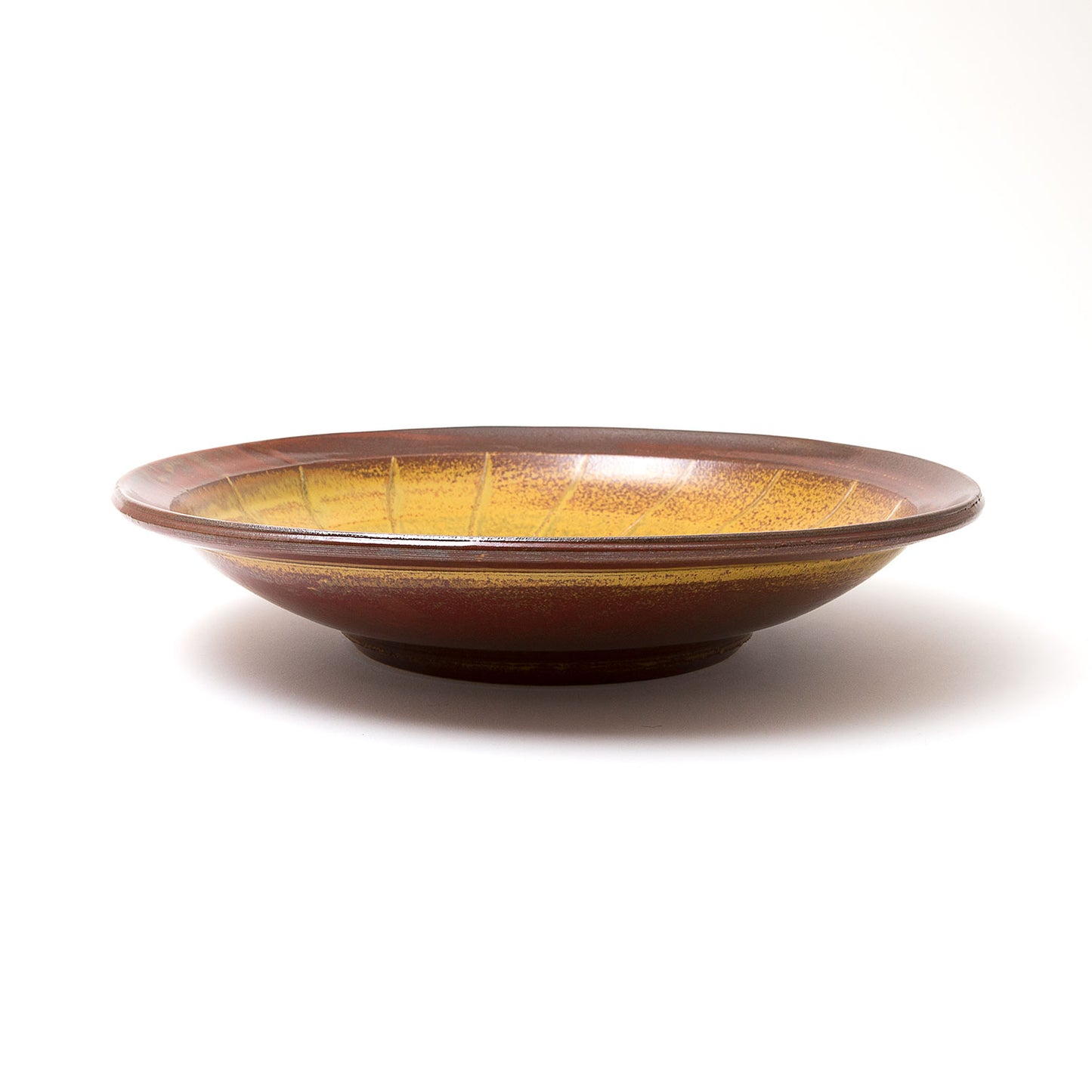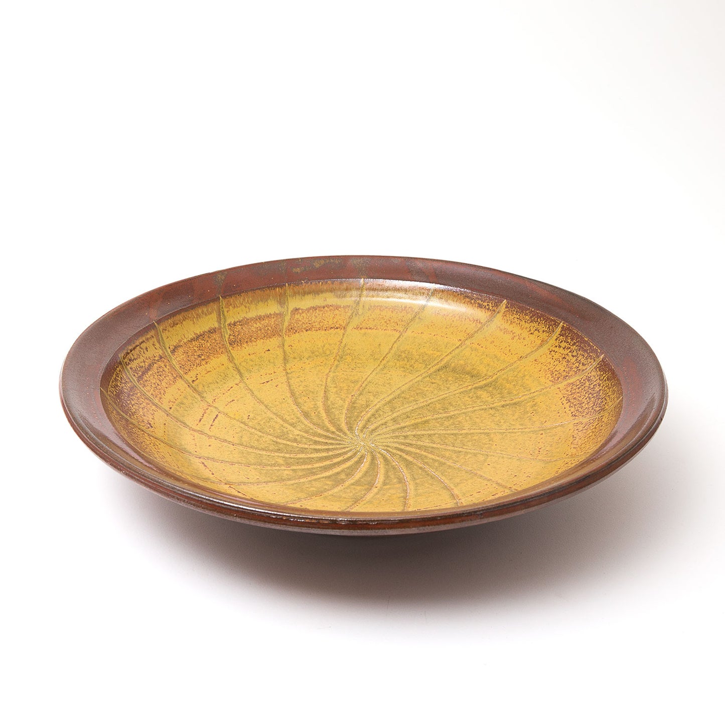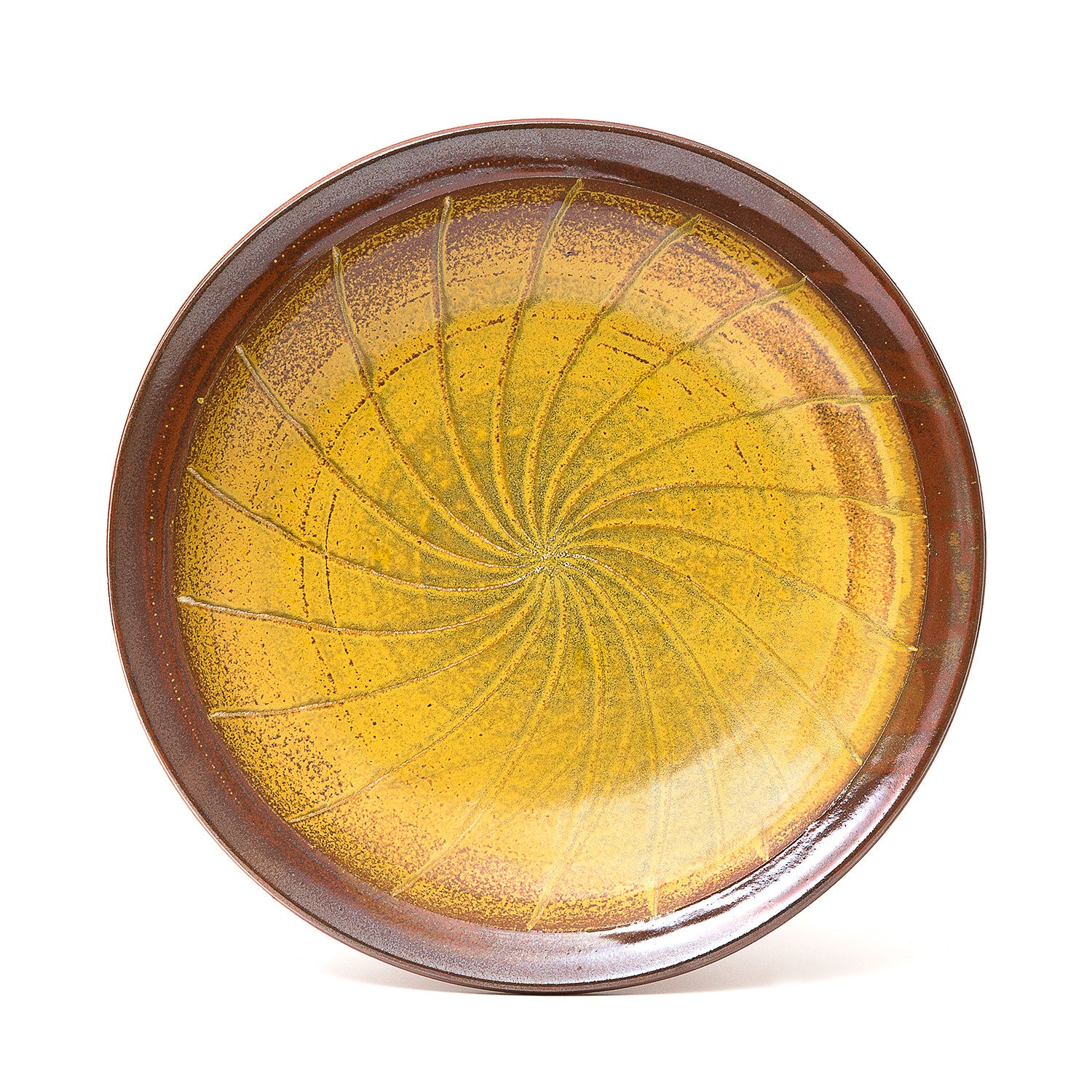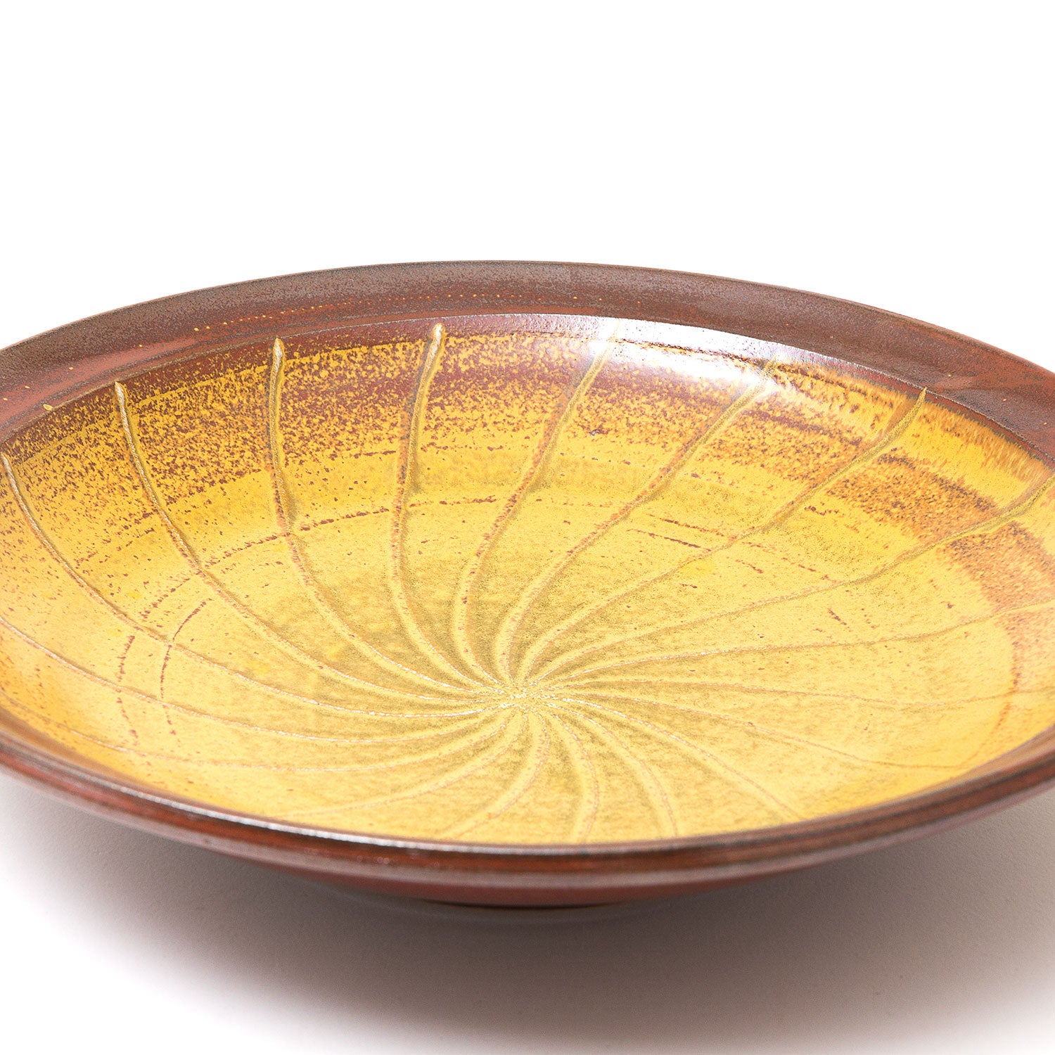 Dots and lines find a natural rhythm on guinomi and small vases, while the lustrous surfaces of persimmon platters are softened by mossy Yōhen ash.