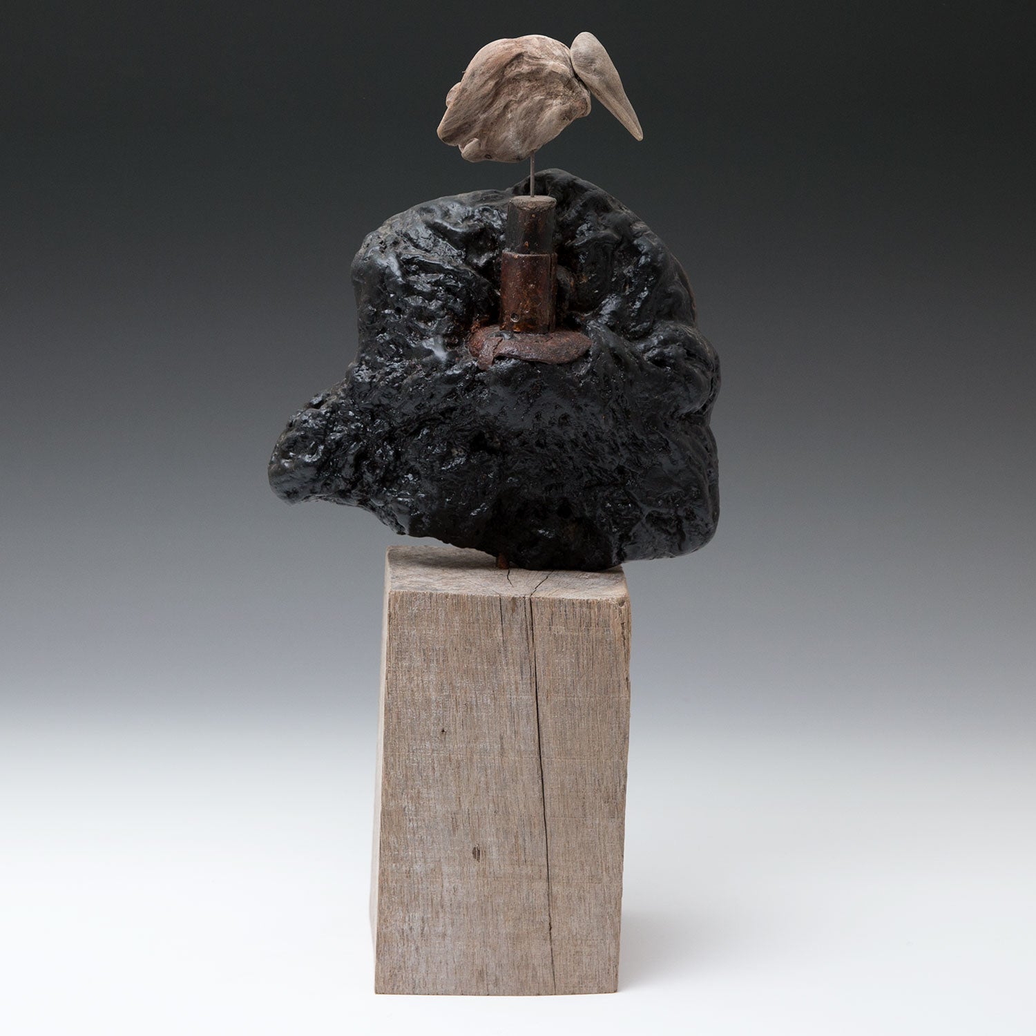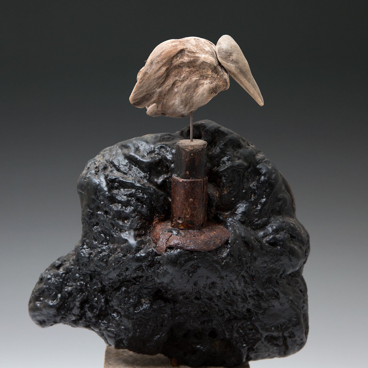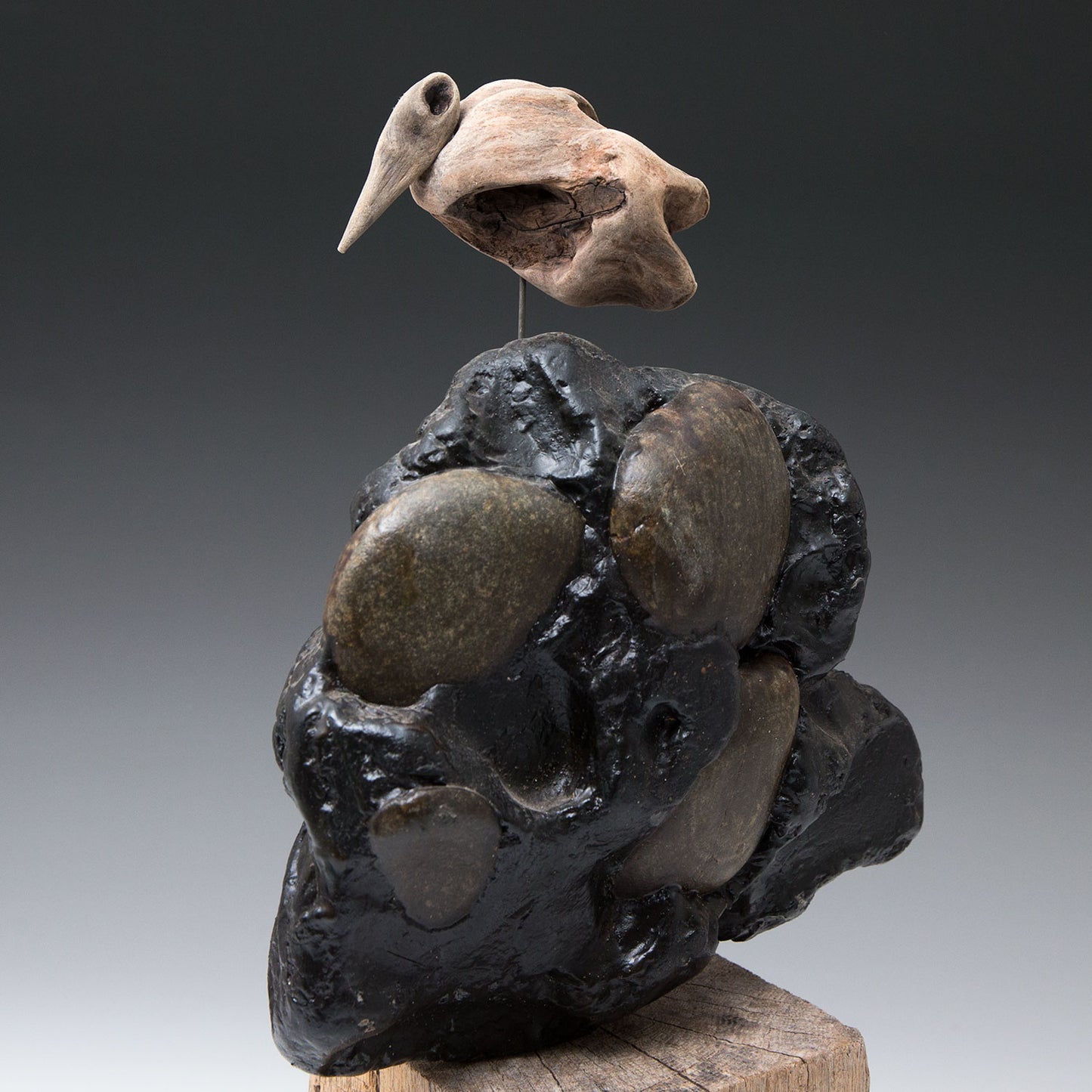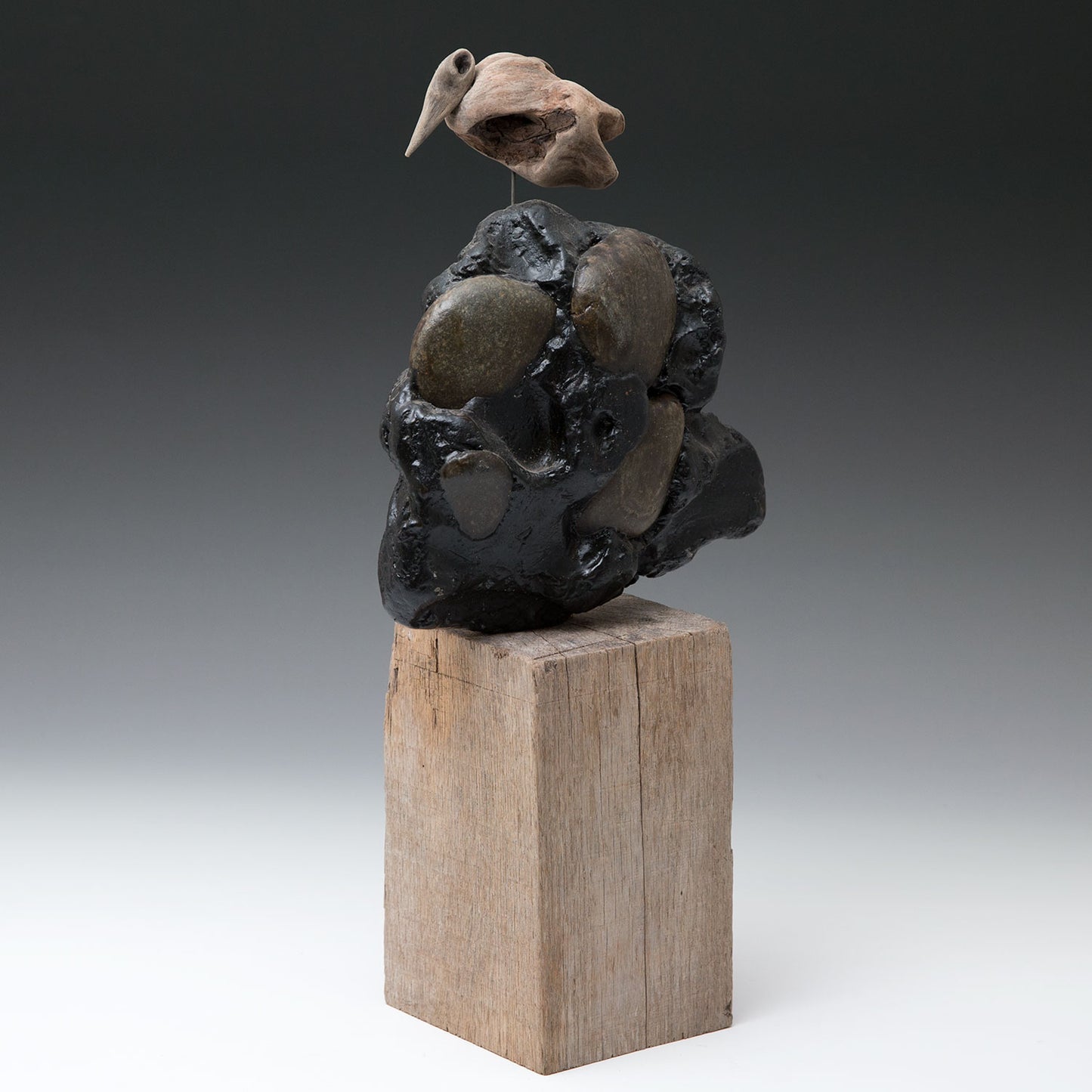 He is now based in Borth near Aberystwyth in Wales, where the flotsam and jetsam from the nearby sea is his only source of materials. Working with found objects, nothing is changed - simply introduced to one another. His driftwood pieces, usually birds, boats or mythical beasts, are full of his passion, integrity and wonderful humour.