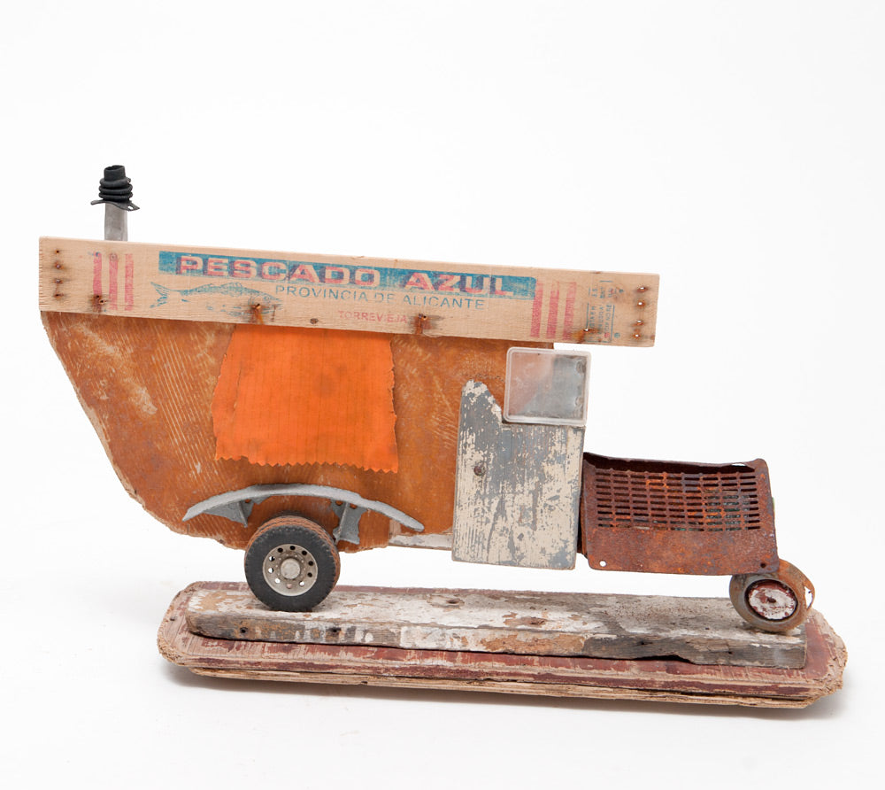 He is now based in Borth near Aberystwyth in Wales, where the flotsam and jetsam from the nearby sea is his only source of materials. Working with found objects, nothing is changed - simply introduced to one another. His driftwood pieces, usually birds, boats or mythical beasts, are full of his passion, integrity and wonderful humour.
