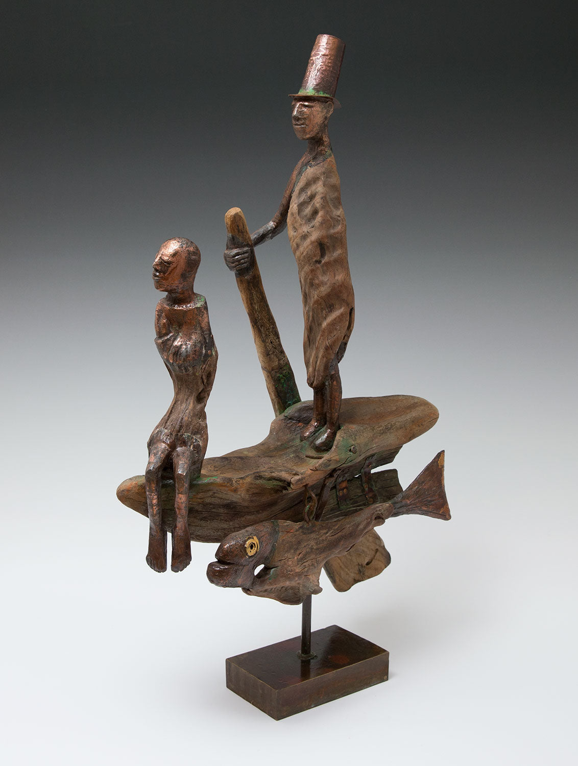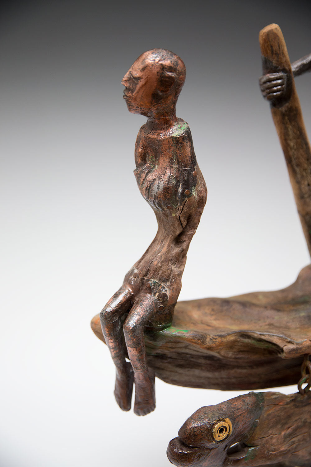 No other living artist in Britain can probably lay claim to having as many works of art in churches and cathedrals as Peter Eugene Ball. Born in 1943, Ball’s idiosyncratic approach to sculpture, in which driftwood and hand-beaten bronze are united with found objects – shells, stones, and all manner of precious detritus – incorporates exceptional craft skills and artistry alongside the natural beauty of his materials.