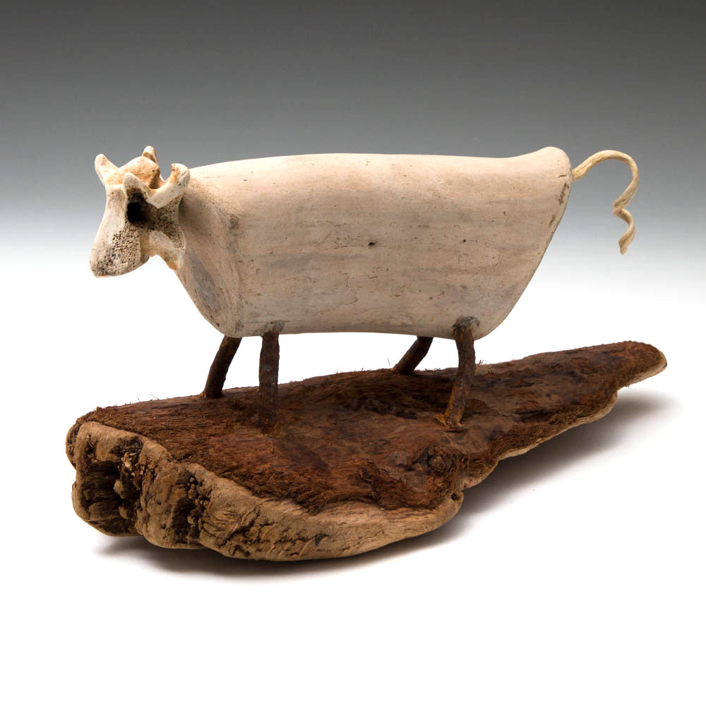 He is now based in Borth near Aberystwyth in Wales, where the flotsam and jetsam from the nearby sea is his only source of materials. Working with found objects, nothing is changed - simply introduced to one another. His driftwood pieces, usually birds, boats or mythical beasts, are full of his passion, integrity and wonderful humour.