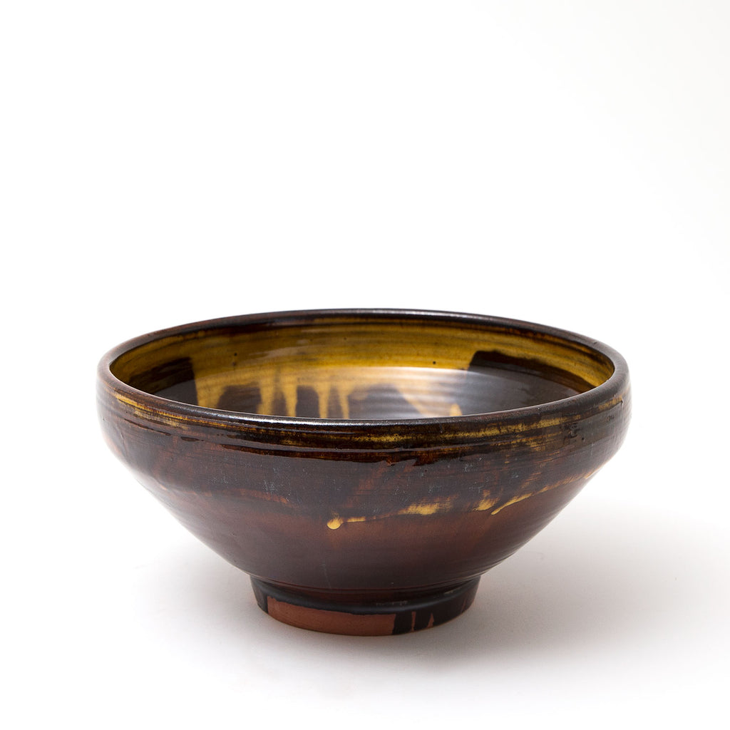 Born in Cardiff in 1943, Bowen studied painting and etching at Cardiff Art School before becoming apprenticed to Michael Leach in 1965. In 1971 he bought a property on the North Devon coast. Bowen converted the outbuildings into his workshop, and in 1976 built a double chambered wood kiln, with a capacity of over 400 cu. ft. holding over 1000 pots.