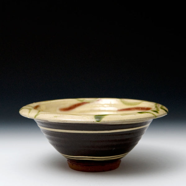 Born in Cardiff in 1943, Bowen studied painting and etching at Cardiff Art School before becoming apprenticed to Michael Leach in 1965. In 1971 he bought a property on the North Devon coast. Bowen converted the outbuildings into his workshop, and in 1976 built a double chambered wood kiln, with a capacity of over 400 cu. ft. holding over 1000 pots.
