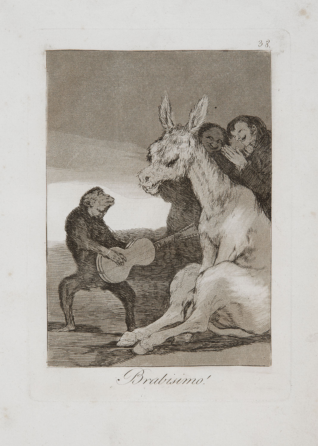 Now almost deaf, Goya’s work showed greater elements of fantasy and satirical observation. Completed in 1799, the Caprichos etchings analysed humanity’s flaws and provided the stylistic basis for his greatest and darkest work, The Disasters of War, composed during the Peninsular War. Goya later returned to Spain, but soon went into voluntary exile in Bordeaux, working until his death there in 1828.