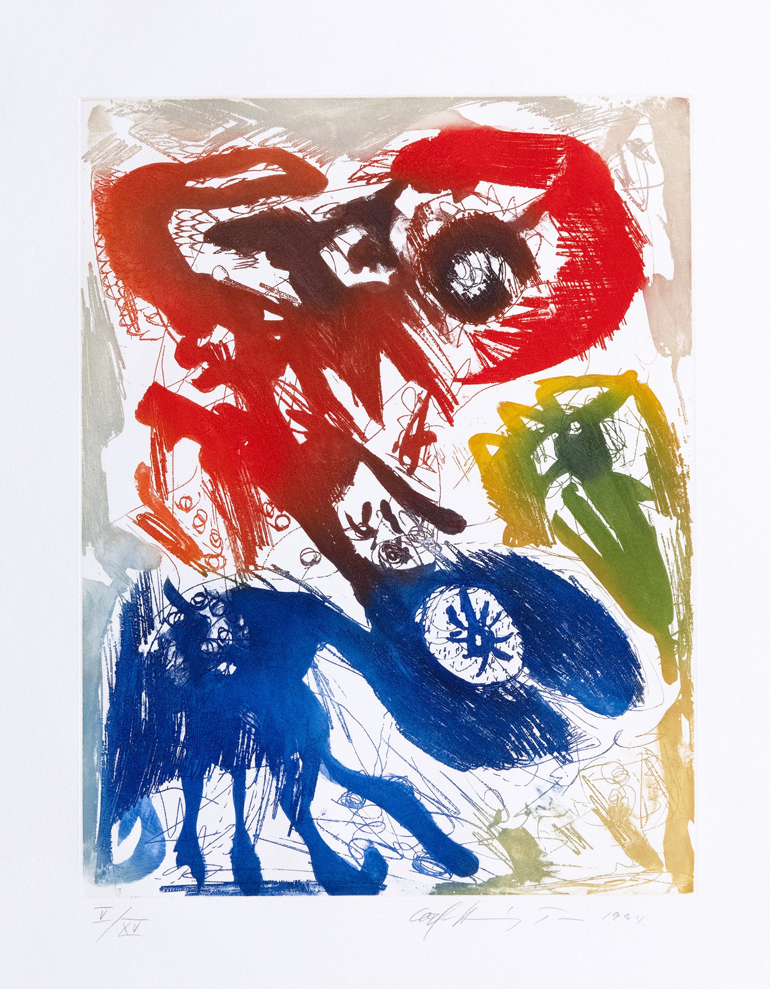 Carl-Henning Pedersen was a Danish painter and a key member of the COBRA movement. Carl-Henning Pedersen is one of the most outstanding of these, and his art greatly influenced most of the members of the group. His poetic talent and particularly his appreciation of the expressive powers of colour have inspired him to paint pictures of great dramatic beauty and originality.