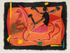 With time, this fascination with form developed into one of allegory. In the horseman, an icon of epic and imperial strength, Marini foresaw an analogy with the militaristic hubris of the Second World War and the atomic age that proceeded it. By the time he came to produce his great graphic works of the late 1960s, his riders had lost control. Their steeds bray and champ with mad rolling eyes, lips curled and hooves nervously pawing the ground: ‘The restlessness of my horses increases with each new work; the riders become ever more impotent, losing command over the animals.’