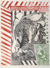 Unique, one copy only hand printed by the artist, original linocut in three colours. full signature, no date. Illustrated in Sanesi, page 25.