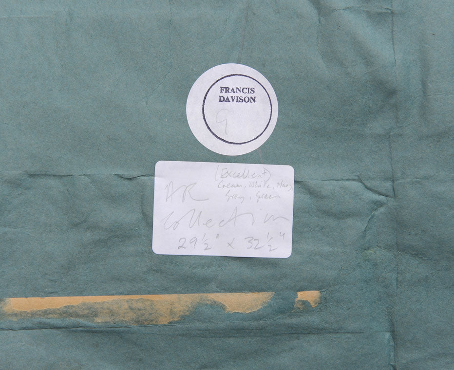 Francis Davison was adopted and brought up in the south of France. Though he read English at Cambridge University and intended to become a poet, in 1946 Davison was invited to go to St. Ives by his former school friend the artist Patrick Heron. There he met Margaret Mellis, settling in Suffolk in 1950. By 1952 Davison had begun to work in collage, and would do so for the next 20 years.